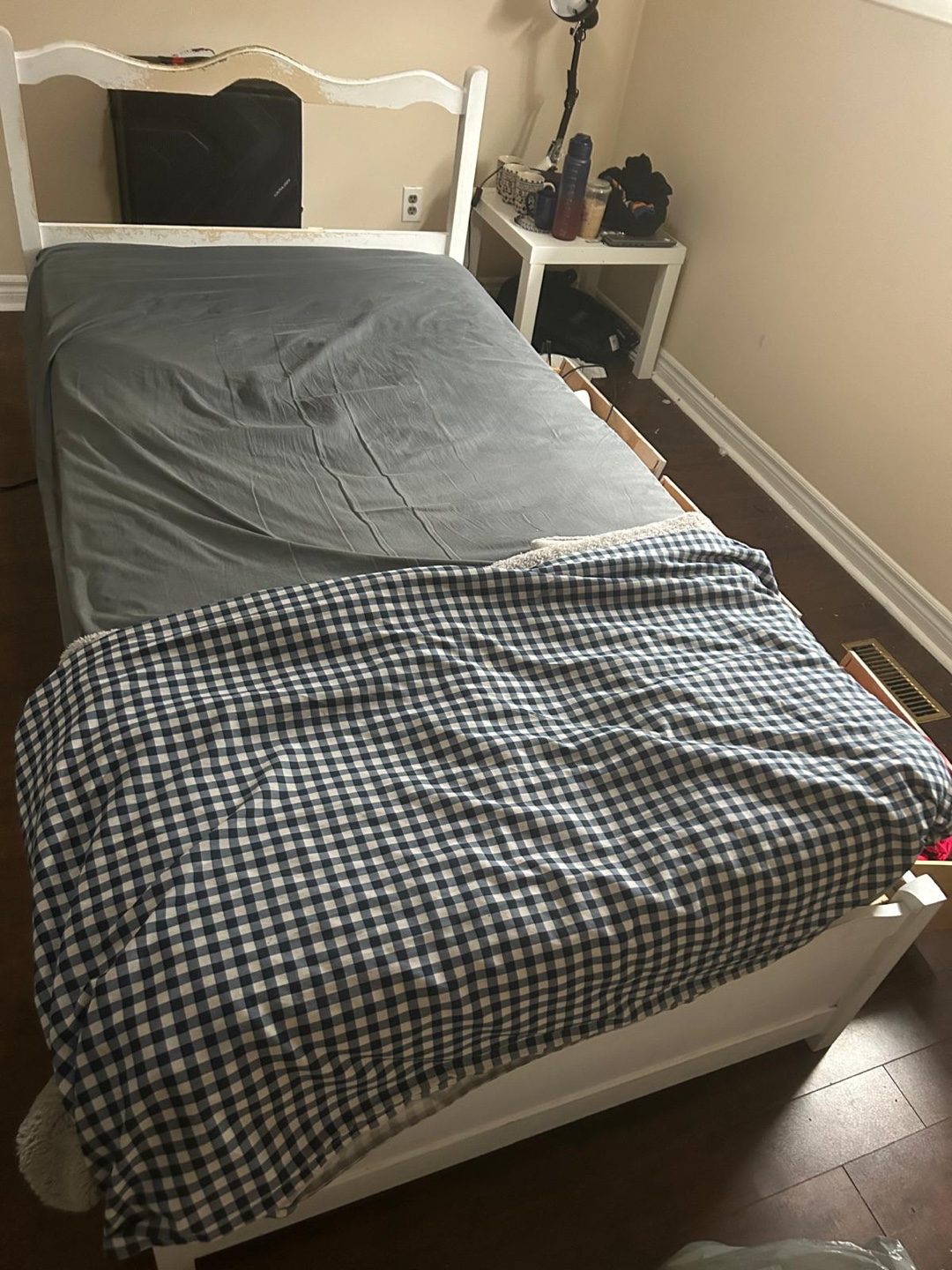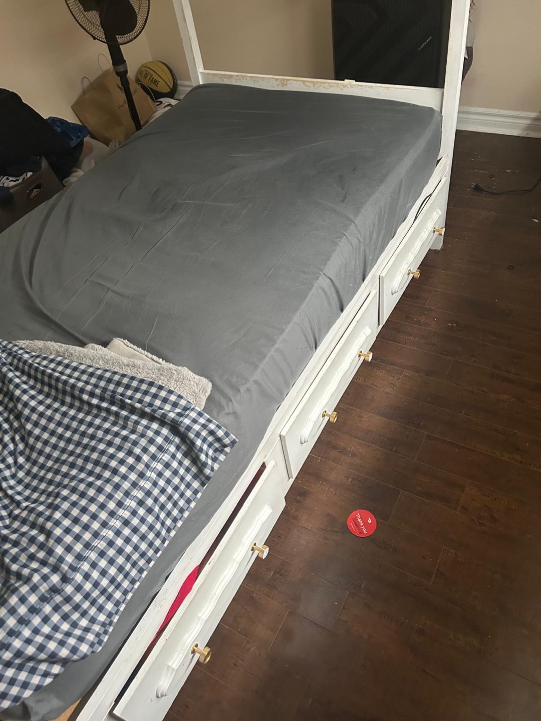 MUST GO White Twin-Size Bed Frame with Drawers and mattress