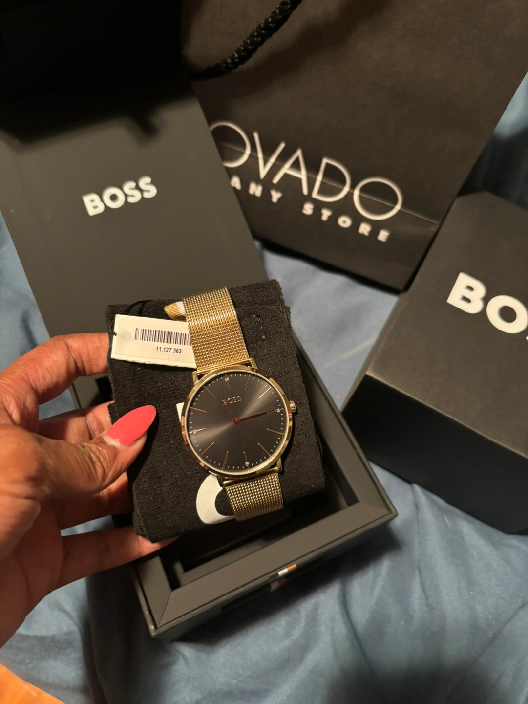 Gold mesh band. Black face. Minimalist design. Comes in original box. Purchased from the Movado company store. Paid $177 after tax