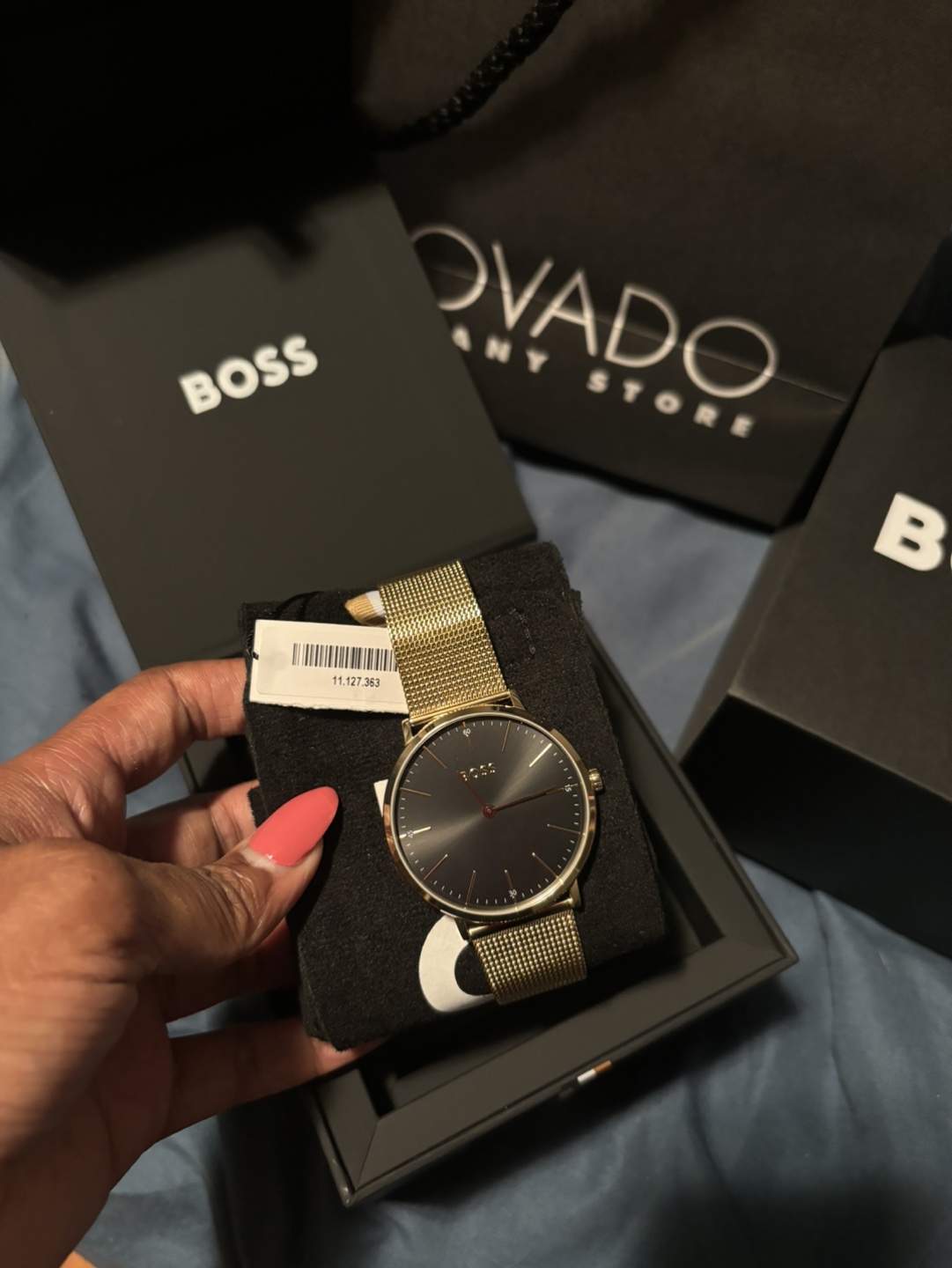Gold mesh band. Black face. Minimalist design. Comes in original box. Purchased from the Movado company store. Paid $177 after tax