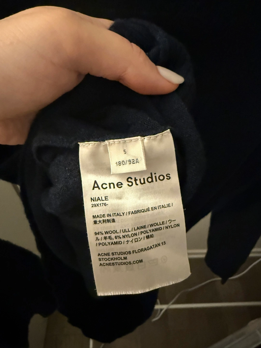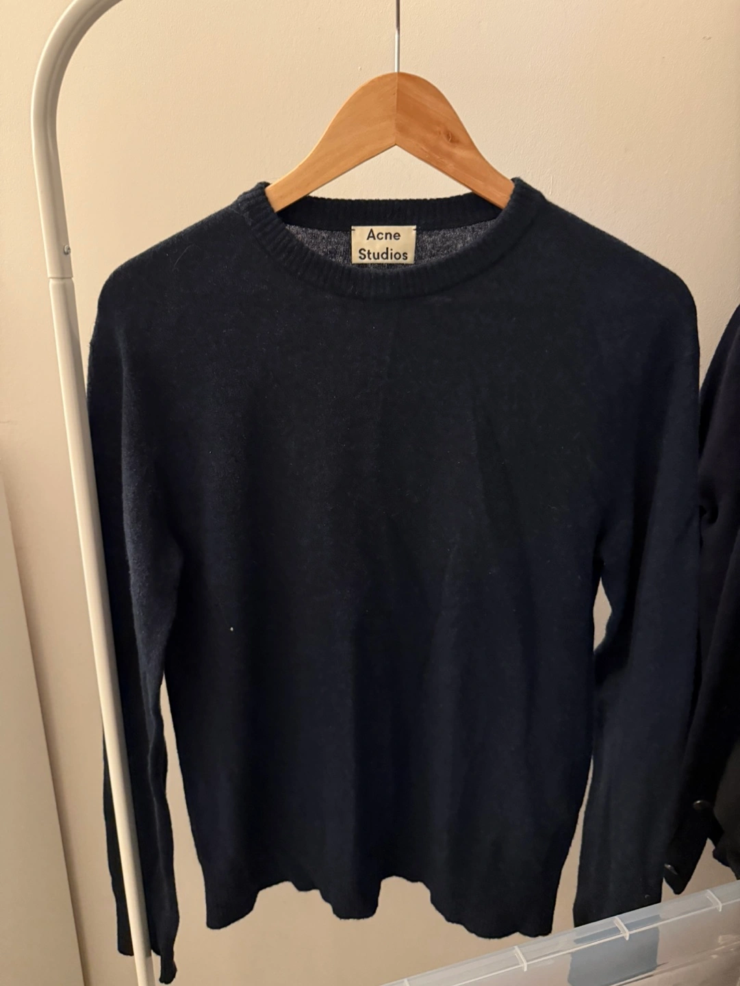 Dark navy blue crewneck sweater. Made in Italy. 94% wool, 6% polyamide. Soft and comfortable. Excellent condition.