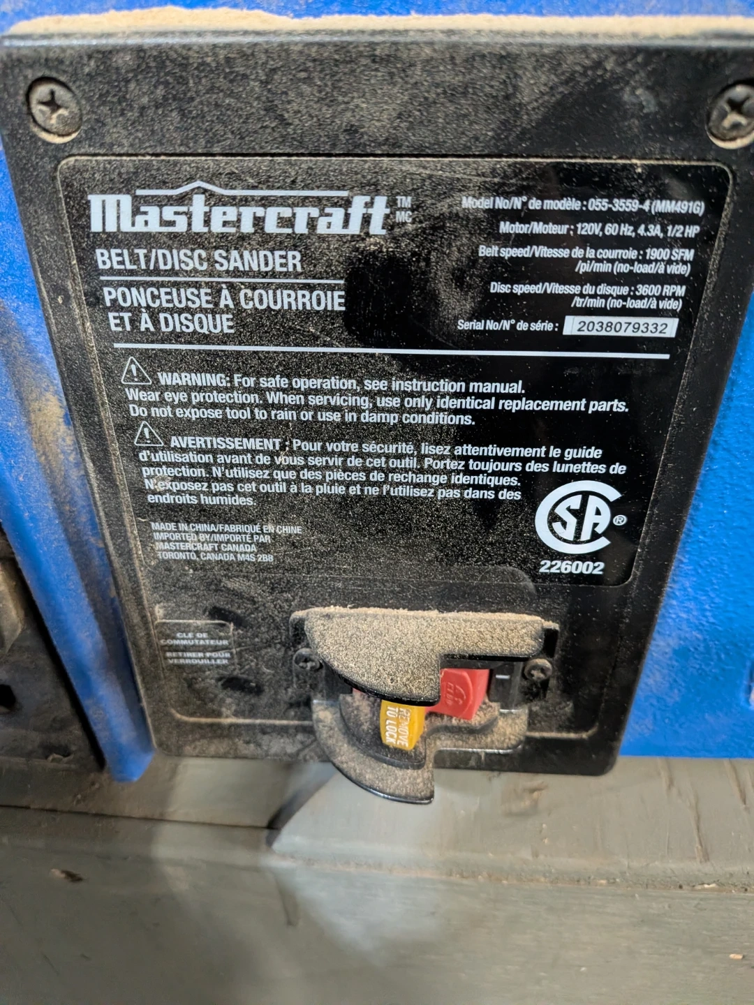 Mastercraft Belt/Disc Sander 055-3559-4 (MM4916)