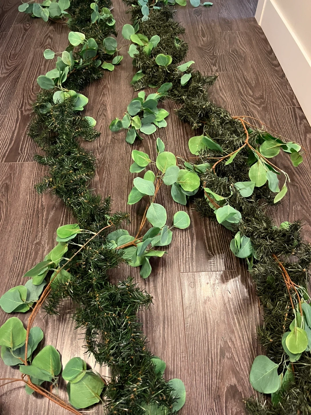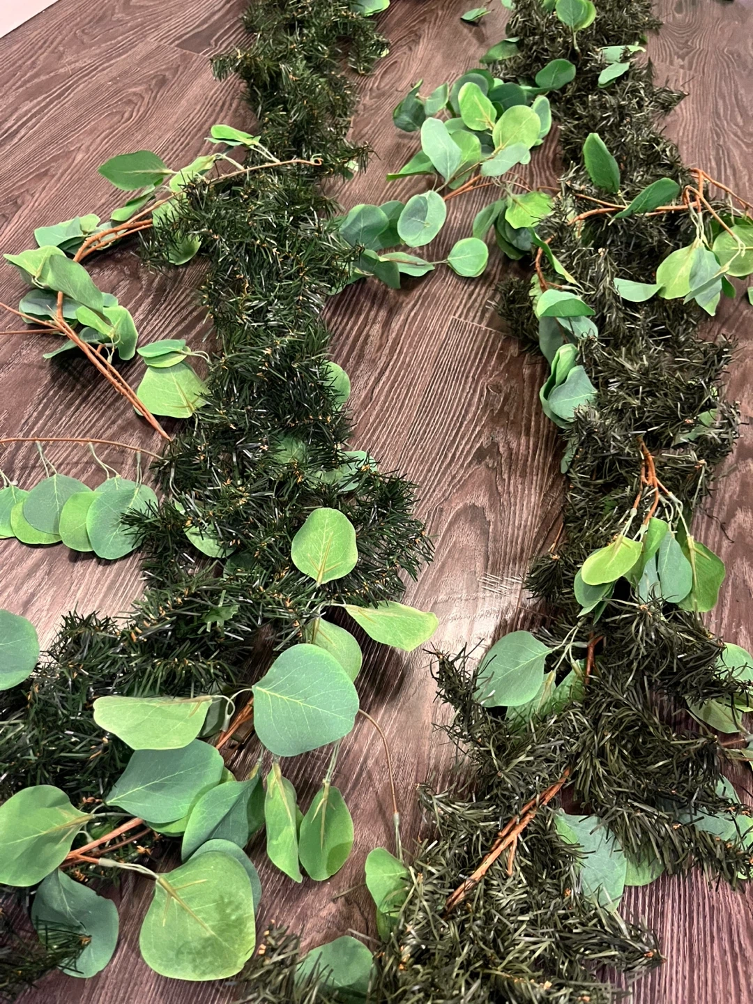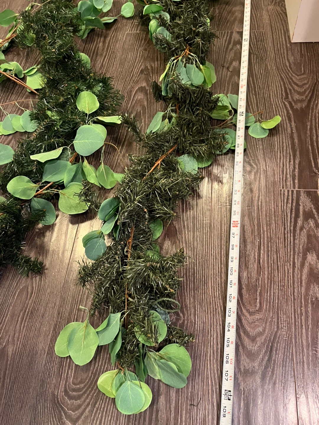 Selling two beautiful garlands, each approximately 9 feet long. They feature a mix of eucalyptus and pine, perfect for adding a touch of greenery to your home decor. Great for mantles, tablescapes, or any space needing a natural accent. Remove the eucalyptus and use any time of year!