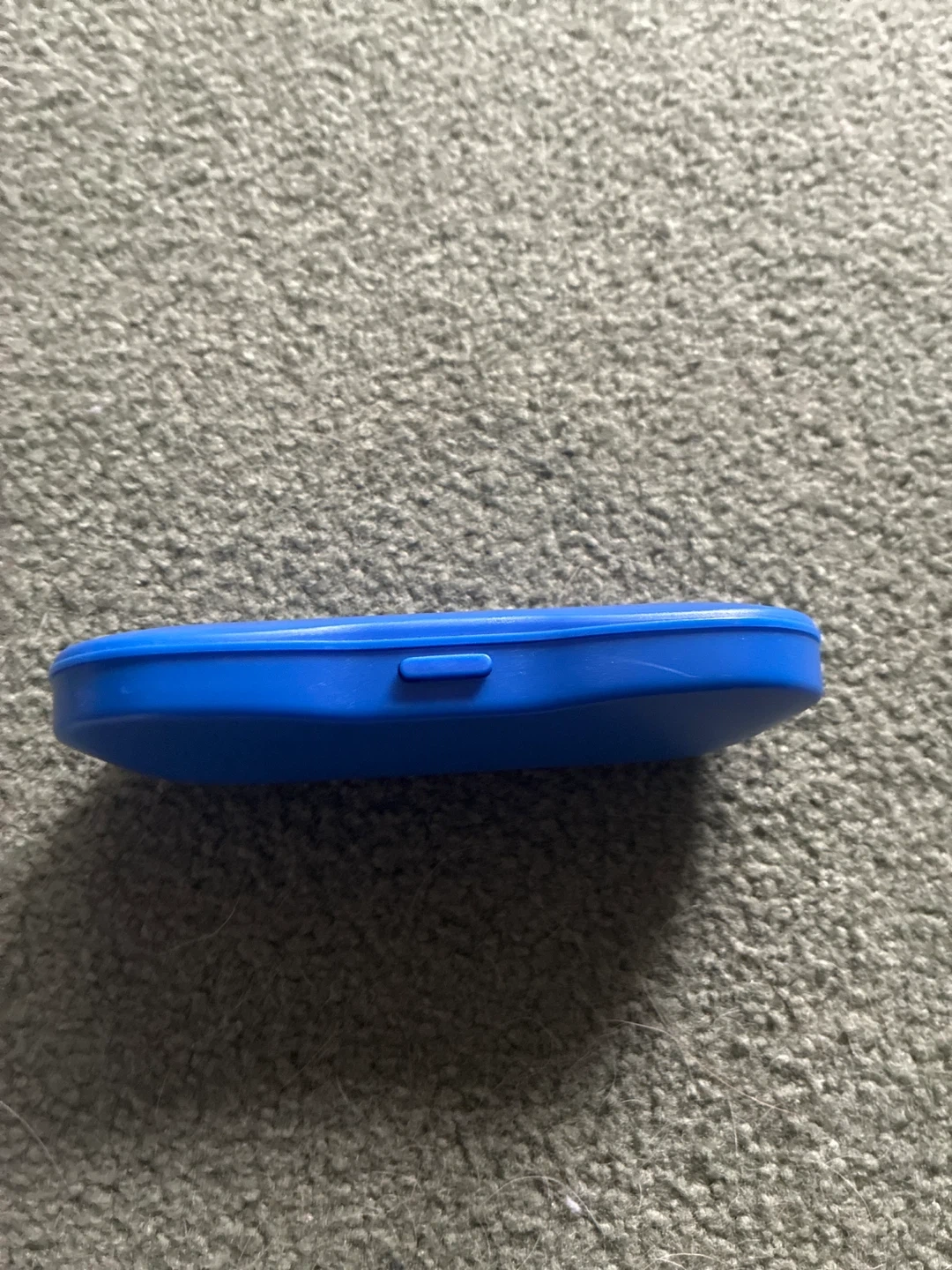 Blue hard shell eyeglass case. Interior is lined with soft material. Case has a secure clasp closure. Protects your glasses from scratches and damage.