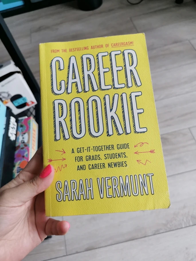 Selling the book Career Rookie by Sarah Vermunt! It's a get-it-together guide for grads, students, and career newbies.