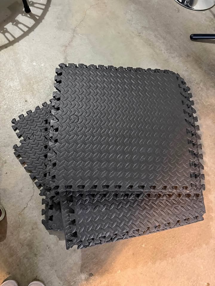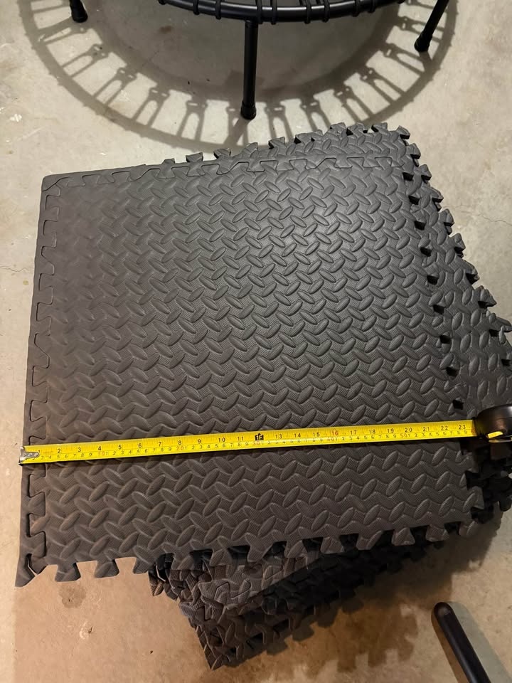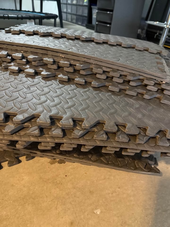 Set of 24 interlocking gym floor mats in good condition. Easy to assemble and remove. Durable and cushioned for floor protection and comfort. If the ad is up, it is available until marked SOLD.