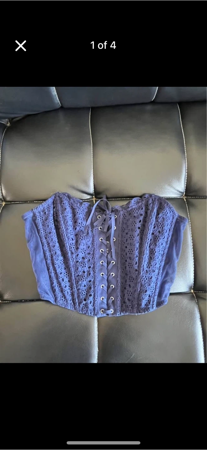 Victoria's Secret Dream Angels corset top in navy blue. Features lace-up detailing and a structured bodice. Made in Vietnam. Size S/P/CH.