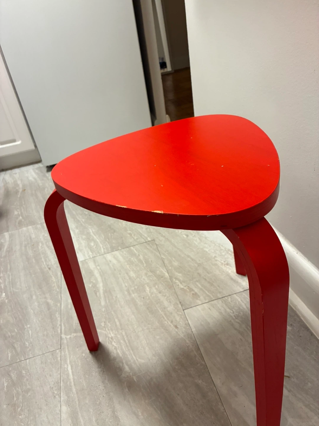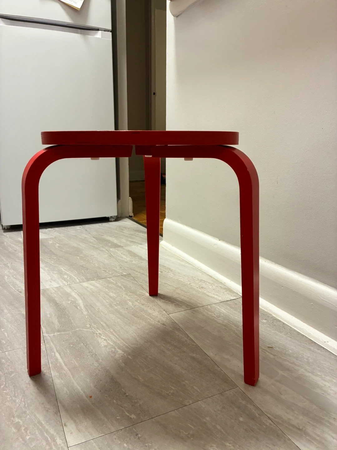 This stool is made from sturdy wood with a painted finish. It's perfect for adding a pop of colour to any room or for extra seating when you need it!