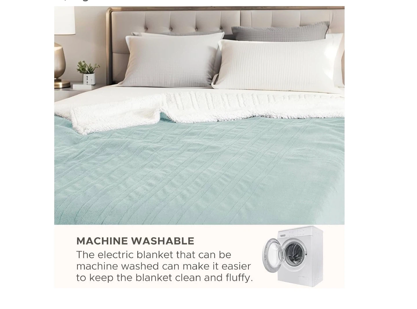 Electric Heated Blanket Full Size 72"x84" - 4 Heat Settings, 10H Auto Shut Off, Soft Microplush & Sherpa Fabric, Machine Washable, Light Green