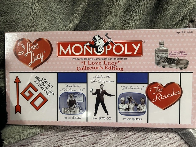Relive the hilarious moments of the iconic 'I Love Lucy' show with this collector's edition Monopoly game! This special edition features memorable scenes and characters from the show, offering a unique twist on the classic board game. Here's what makes this edition special: Collectible pewter tokens featuring Lucy, Ricky, Ethel, and Fred, Custom 'I Love Lucy' themed game board, Houses and hotels are replaced with apartments and stages, Chance and Community Chest cards are replaced with 'Vitameatavegamin' and 'California, Here We Come!' cards. If you're reading this, then great news—it's still available! Get ready to shout 'I love Lucy!' as you bankrupt your friends and family. Condition: New. Payment accepted: Cashless payment, Cash.