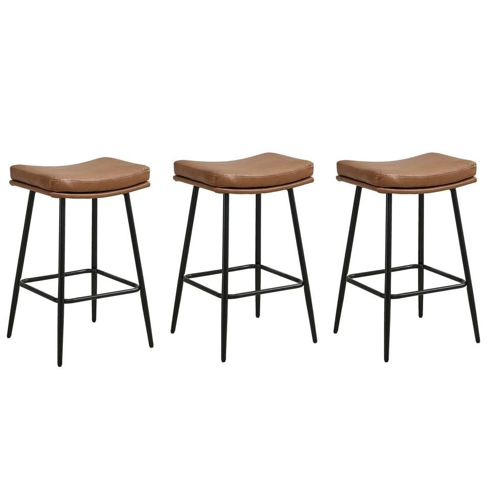 Set of 3 Vegan Leather Counter Stools - Brand New