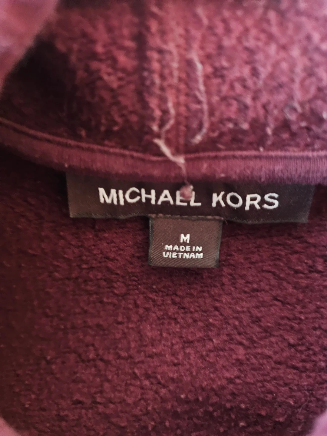 This Michael Kors hoodie is a size medium and comes in a deep maroon colour. It's made from a soft fabric, perfect for casual wear. The hood features a cozy fleece lining for extra warmth!