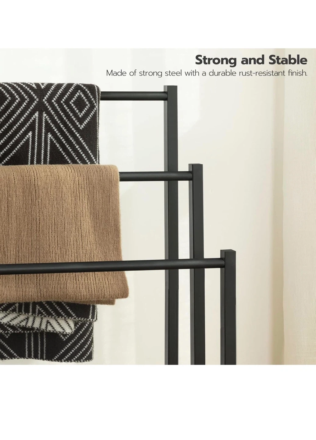 HOOBRO 3 Tier Blanket Ladder Holder for Bathroom, Black Metal