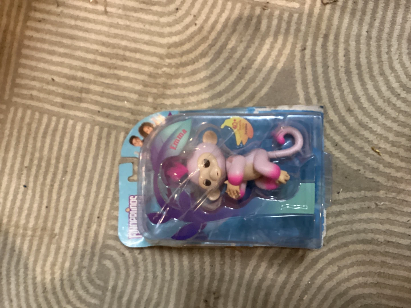 This is a Fingerlings interactive toy monkey named Emma. It's a collectible accessory that attaches to your finger and responds to touch and sound. It's a great little toy for kids!