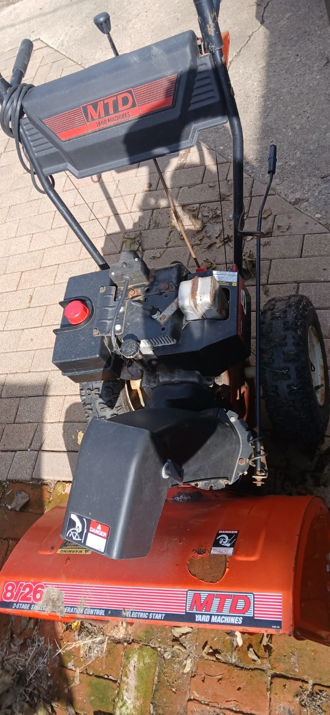 MTD Yard Machines 8/26 2-stage snow blower. Electric start and serrated auger. I put it in the garage and it doesn't run. I don't know what's wrong with it.