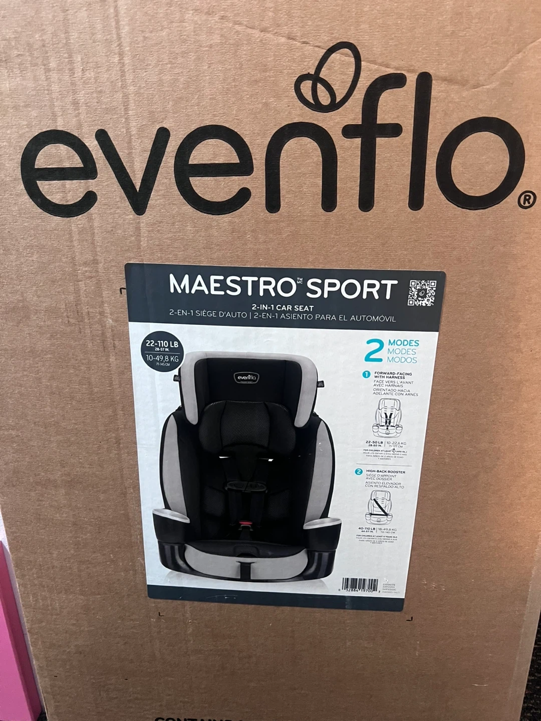This Evenflo Maestro Sport is a 2-in-1 car seat. It's designed for forward-facing use and as a high-back booster. The seat accommodates children weighing 22-110 lbs.