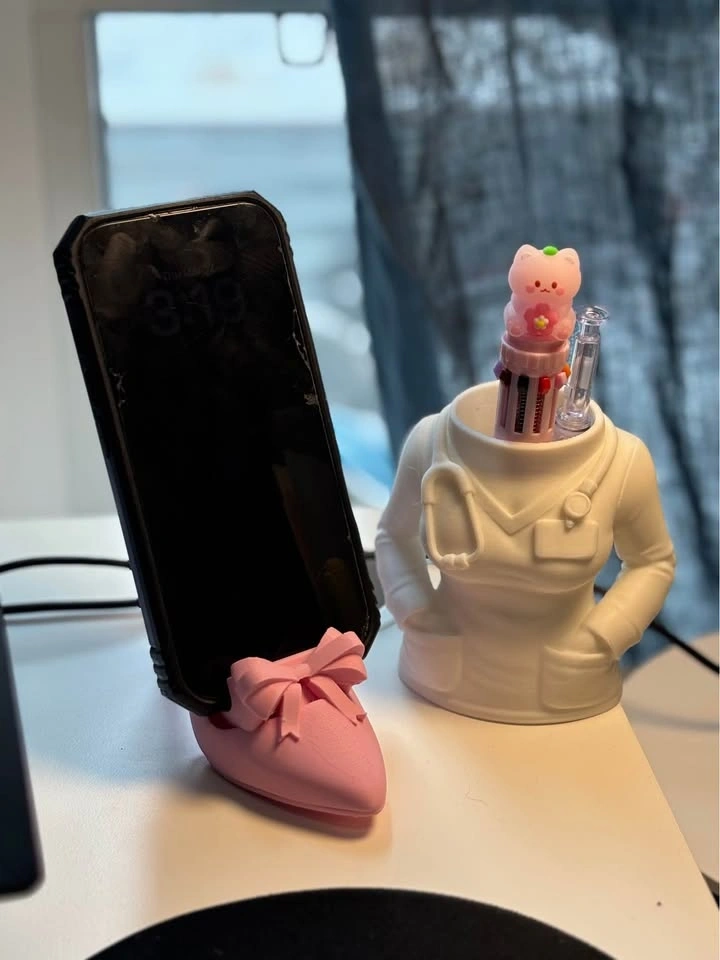 Add some personality to your desk! These adorable 3D printed desk accessories are perfect for work, school, or gifts. 🌸 Phone Holder (Bow Shoe Design) Perfect for holding your phone while you work, watch videos, or video chat. 🩺 Nurse Pen Holder A fun and practical desk piece for nurses, healthcare workers, or nursing students. Great for holding pens, pencils, or small tools. 💗 $10 each 🎨 Colors can be customized 🎁 Great for gifts, coworkers, teachers, or your own workspace.