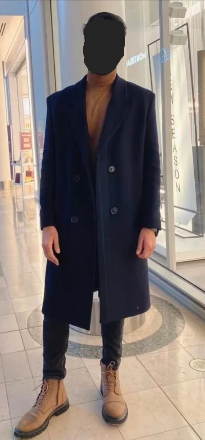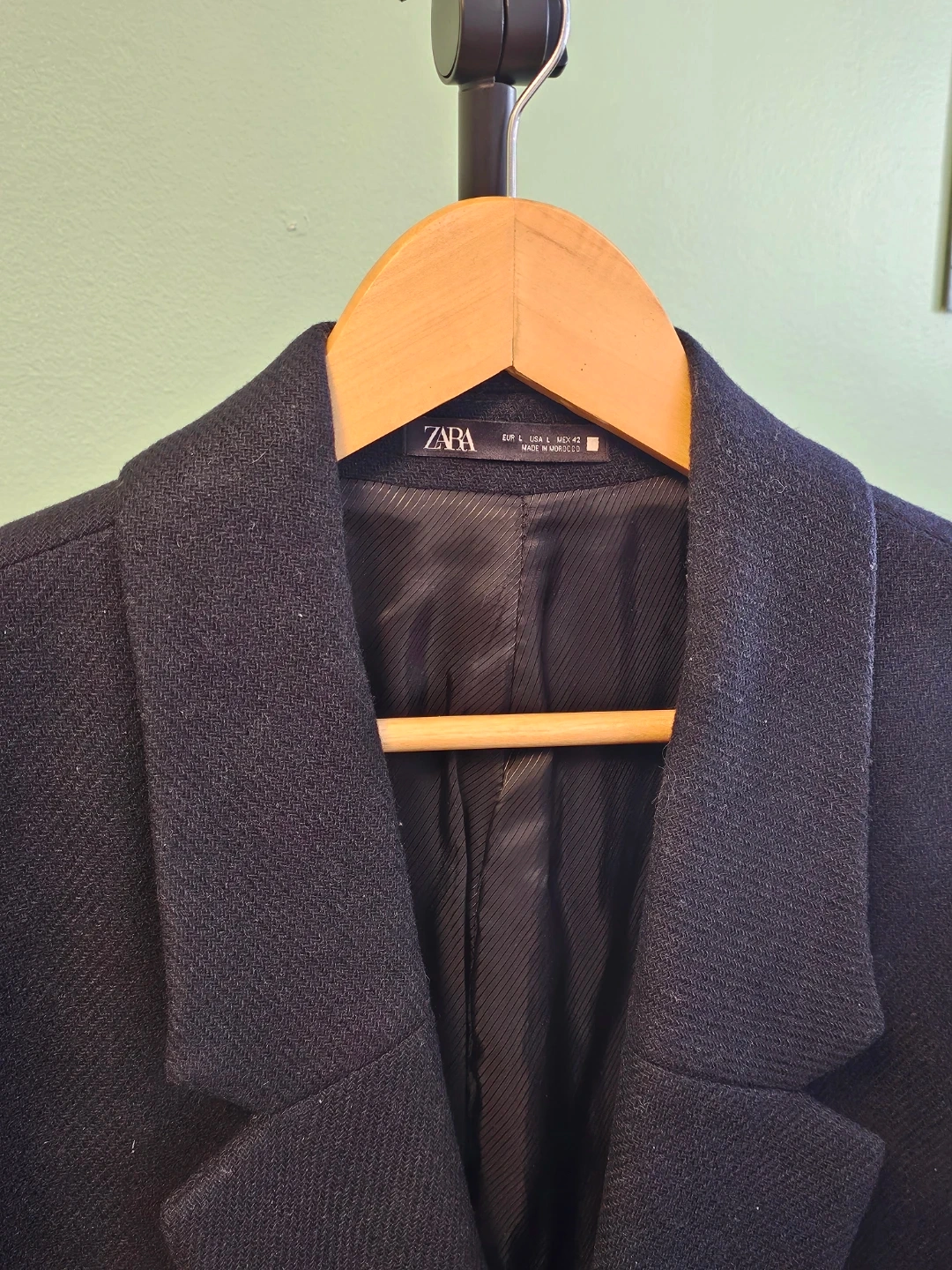 Sharp ZARA double-breasted coat. Wool blend fabric. Features classic lapels and a comfortable fit. Made in Morocco.