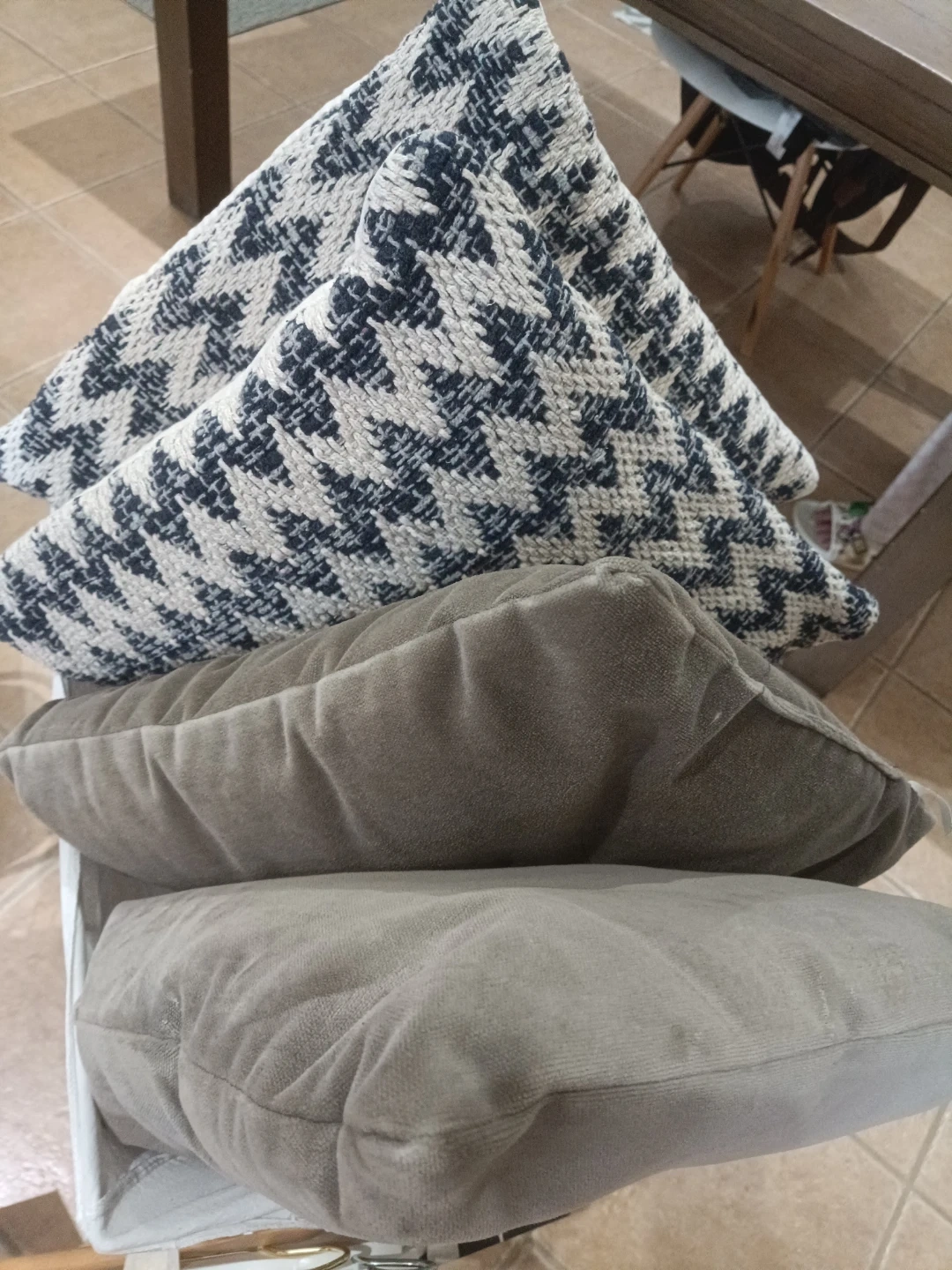 Four decorative cushions with different textures and patterns, perfect for refreshing your home decor. Includes a combination of wooden, plastic, and metal hangers to organize your closet. Price is negotiable.