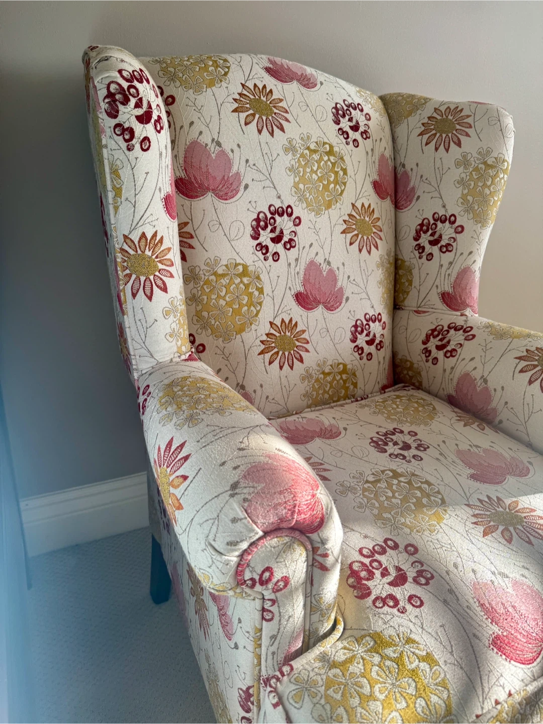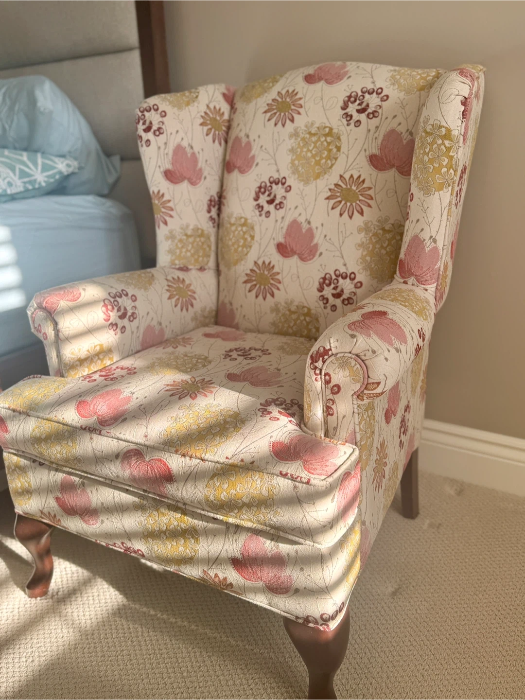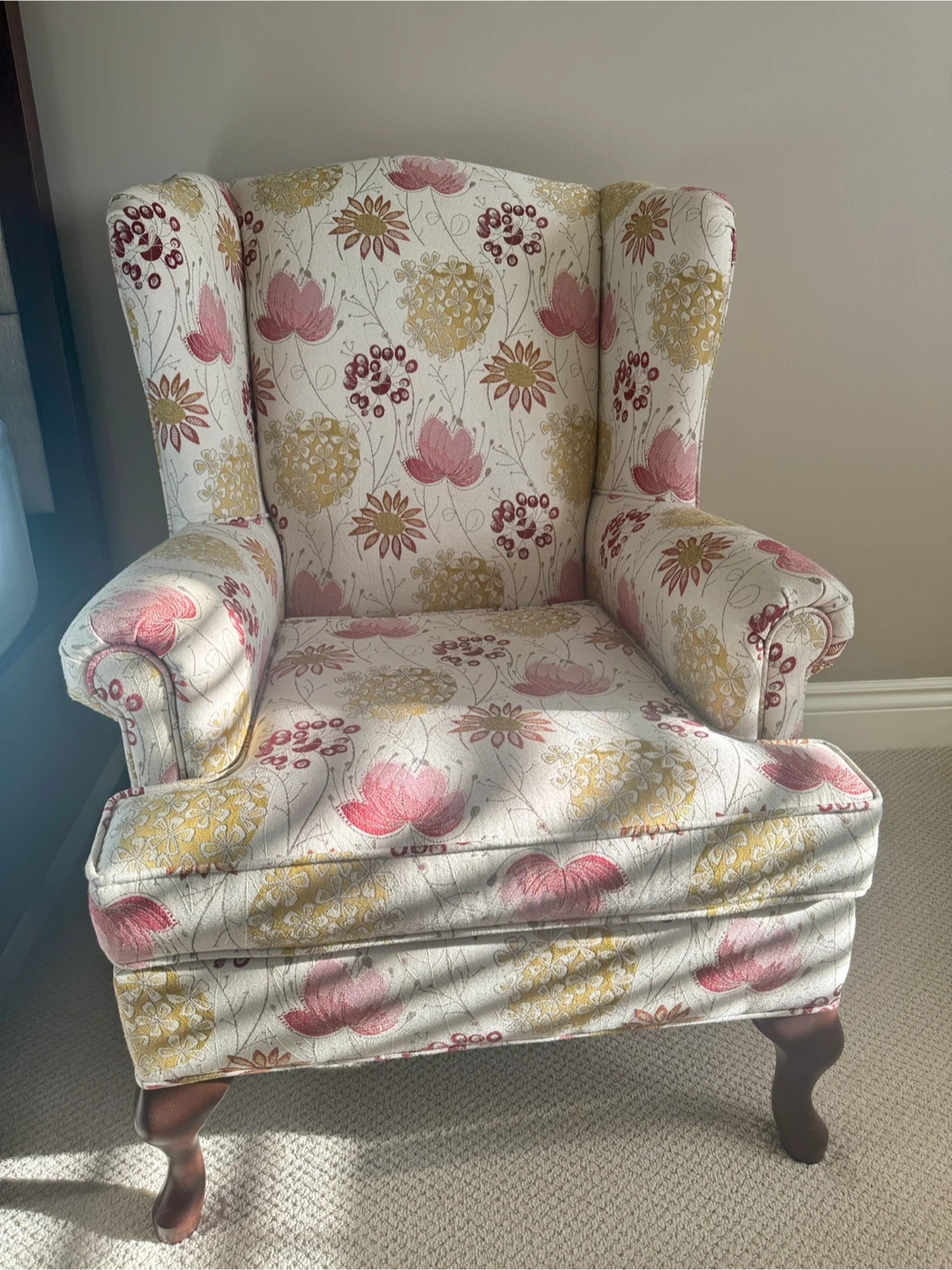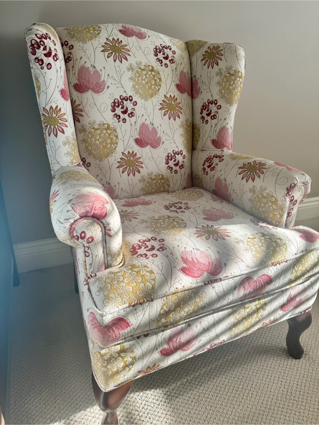 Queen Anne Wing Chair Floral Print