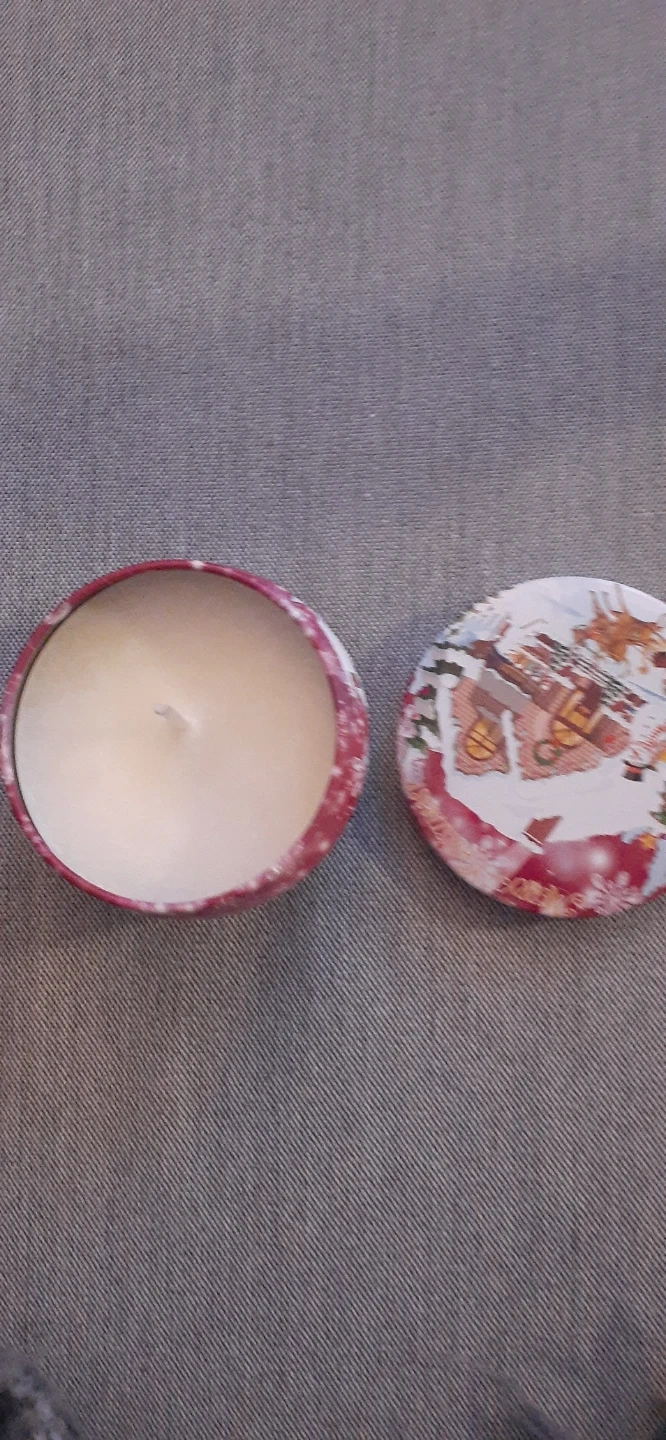 This scented candle comes in a charming decorative tin with a lid. The tin features a festive winter scene design, perfect for adding a cozy touch to your home. It's great for creating a relaxing atmosphere during any season!