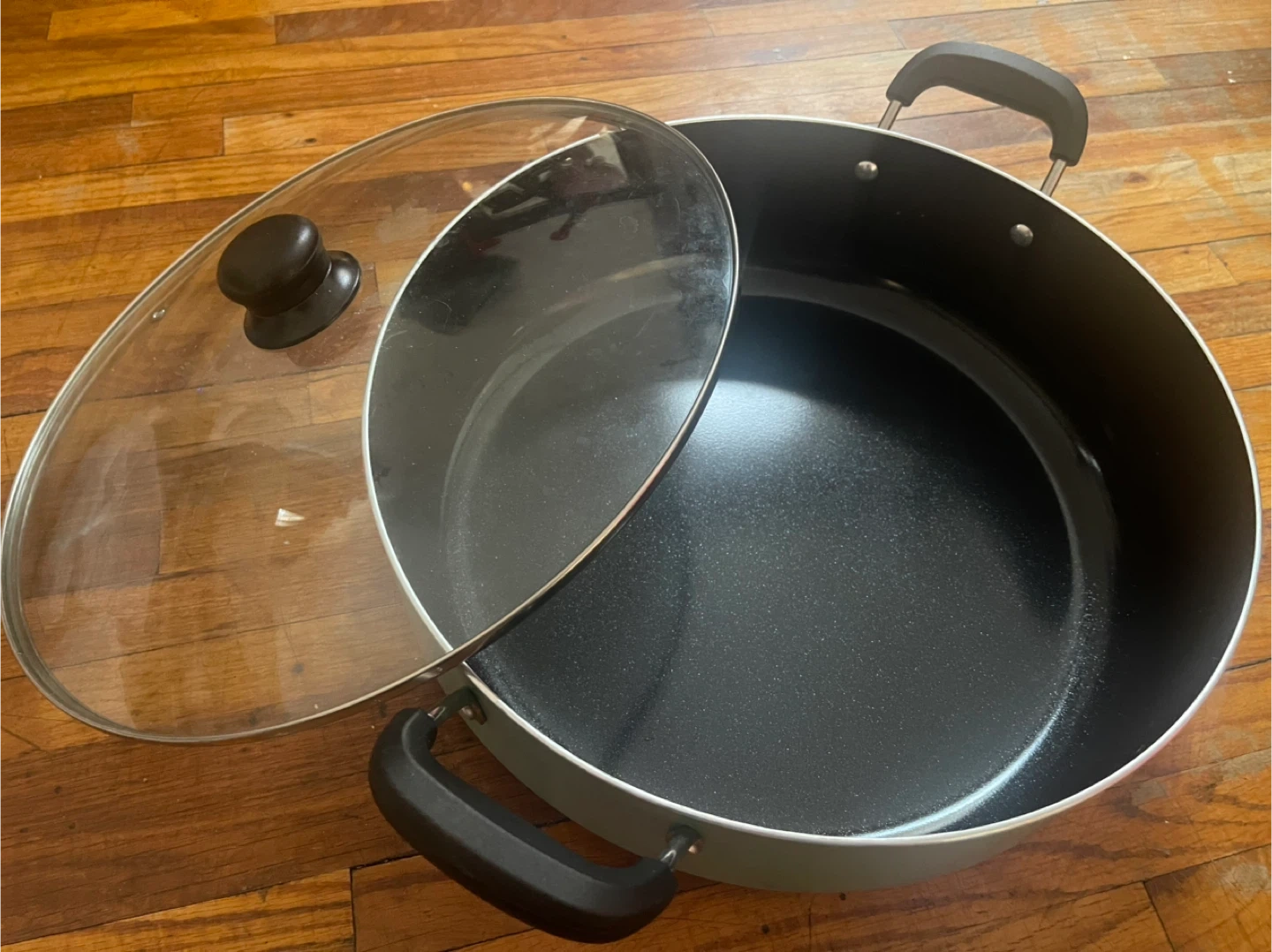 This large stock pot is great for making soups, stews, or pasta! It's non-stick interior and glass lid make cooking and cleaning easy. Features sturdy handles for a secure grip.