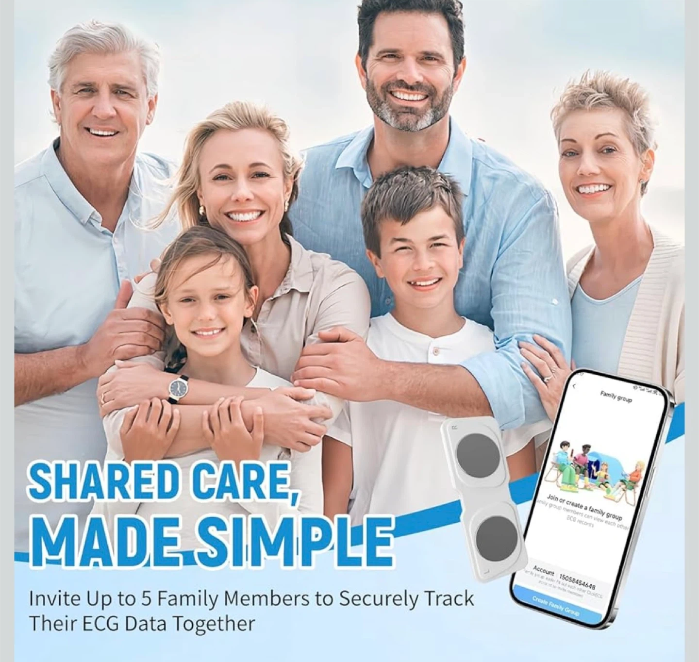 This portable ECG monitor provides quick and clear insights with fixed 30-second rapid ECG measurements. It's compact and designed for easy use at home, during travel, or for sports. No subscription is needed, and it offers report downloads and weekly health reports.