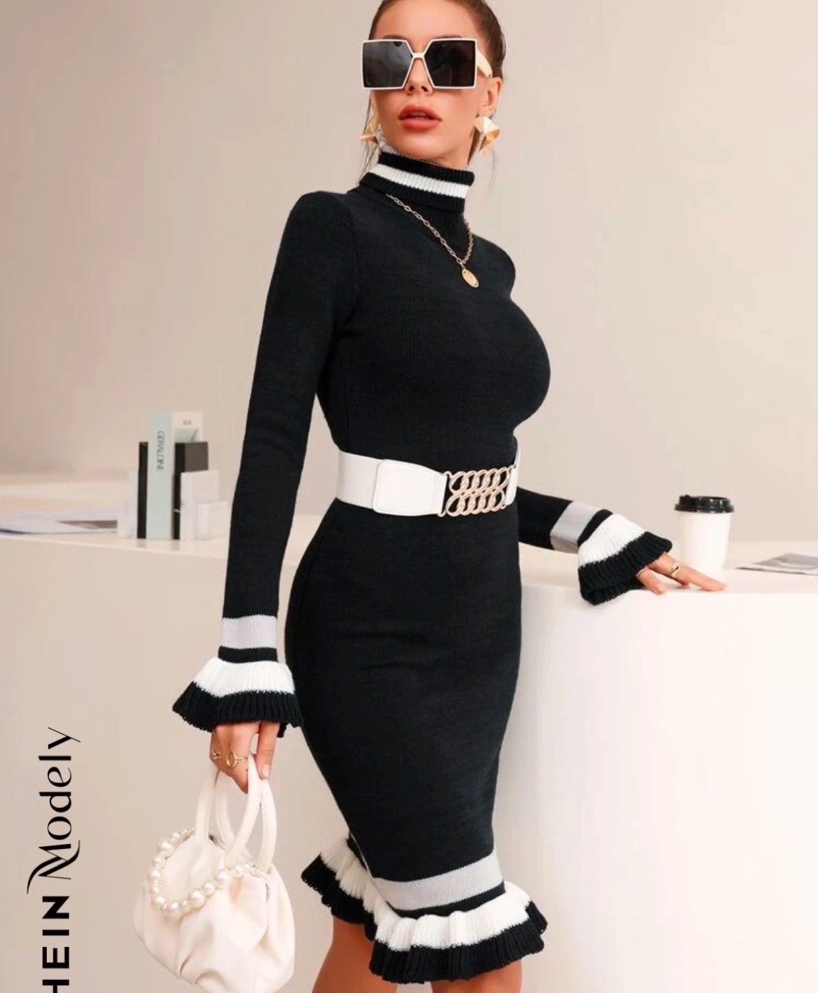 Black and White Knit Sweater Dress