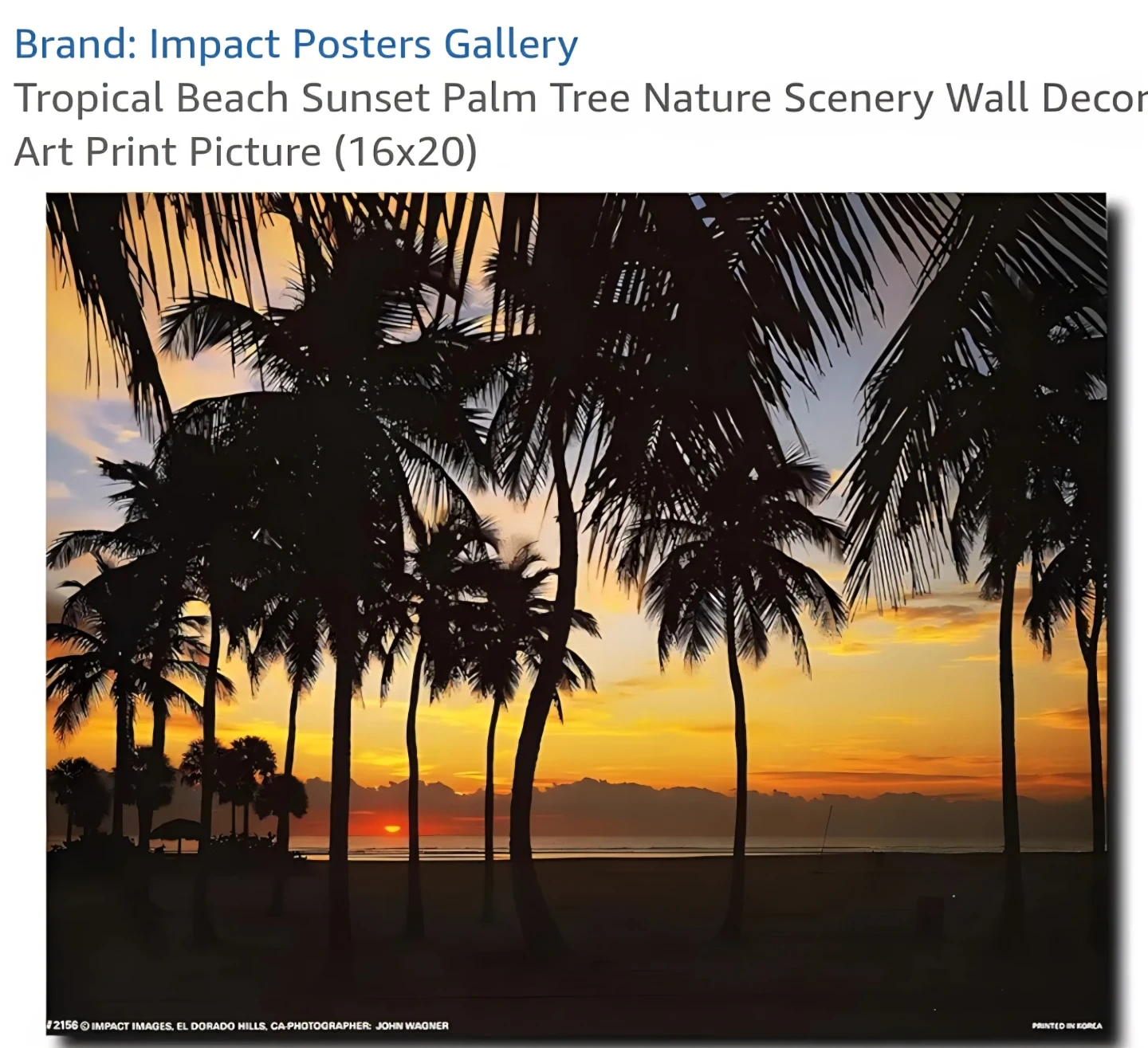 Selling a lovely tropical beach sunset art print from Impact Posters Gallery! It's a beautiful nature scenery wall decor wood picture. The size is 16x20.