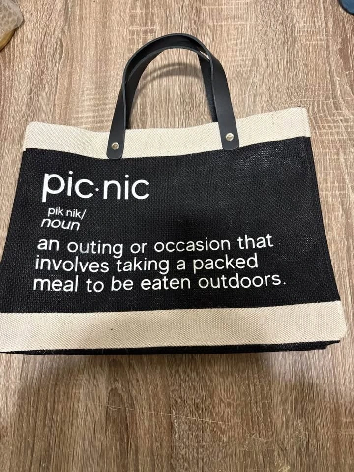 Selling a set of FOUR matching picnic tote bags. Perfect for girls’ trips, lake weekends, winery tours, beach days, or group gifting. Each bag features a classic black & natural canvas design with leather-style handles, pocket inside and the definition print: “pic.nic (noun): an outing or occasion that involves taking a packed meal to be eaten outdoors.” Originally $65 each → $260 total value. Selling all four together for $160. Heavy-duty canvas, structured tote shape, leather-style handles, new with tags, pocket built inside. Perfect if you’re looking for a discounted group set or coordinating bags for a trip. Pickup at Urbanhome Interior Design – Windsor. Pickup between 10:00 AM – 4:00 PM Monday - Friday and select Saturdays. Cash or debit in store. No delivery. Final sale.