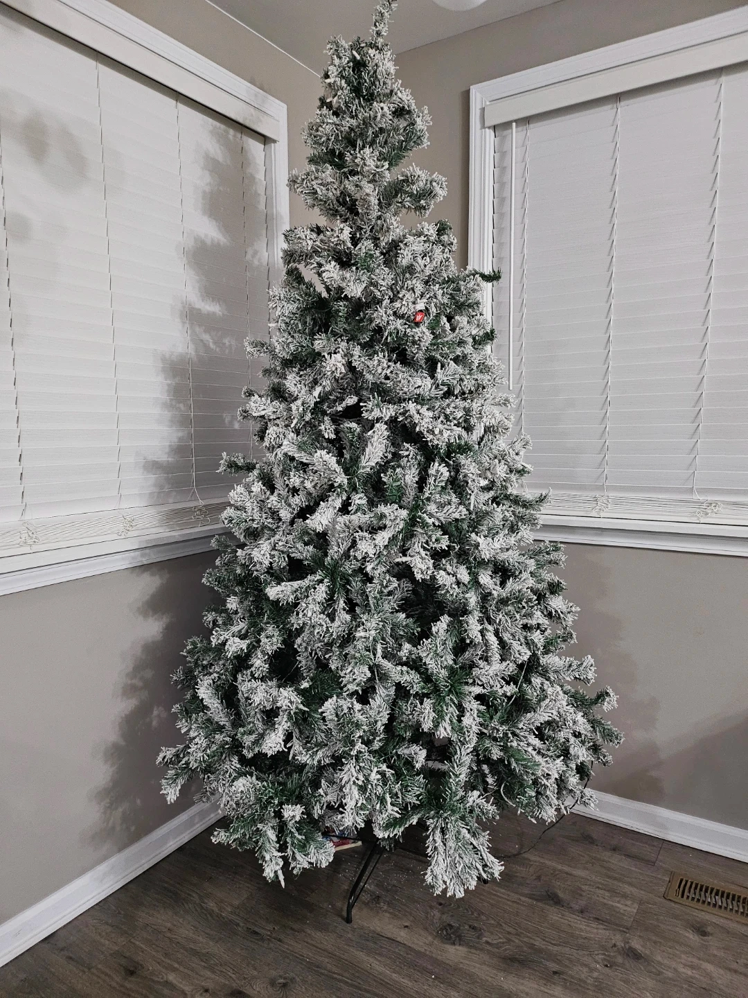 Selling a beautiful flocked artificial Christmas tree. It's in great condition and ready to bring holiday cheer to your home!