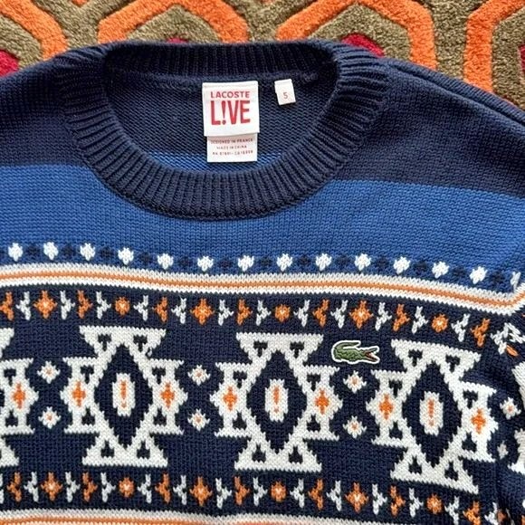 🏆 Lacoste L!ve Fair Isle Blue and White Crewneck Sweater (M)