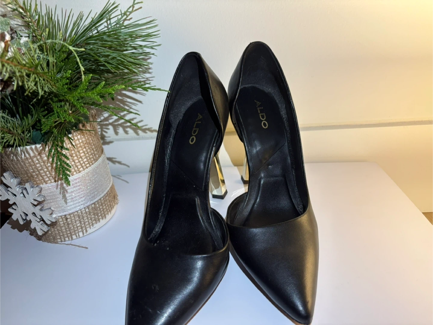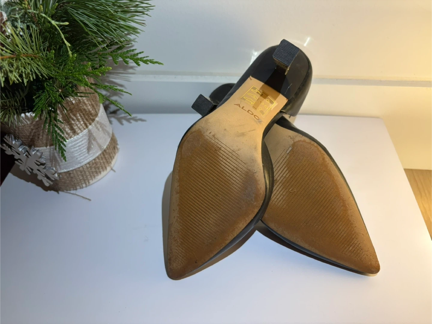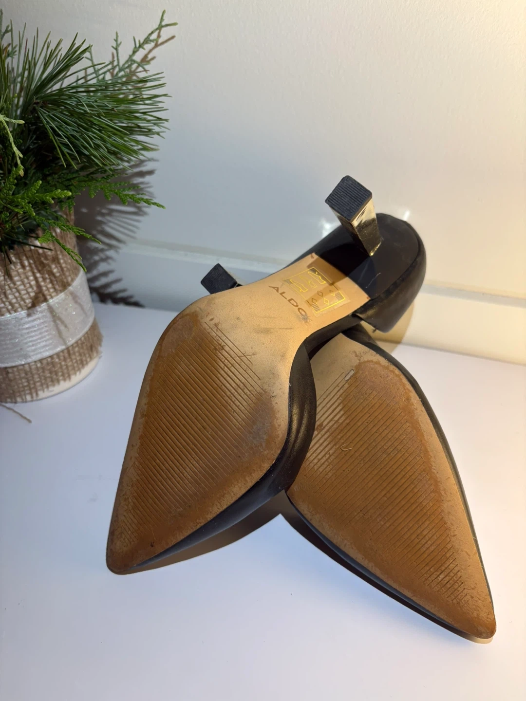 Selling a pair of Aldo black heels. They show some signs of wear on the soles, but the uppers are still in good shape. Perfect for a night out or a special occasion!