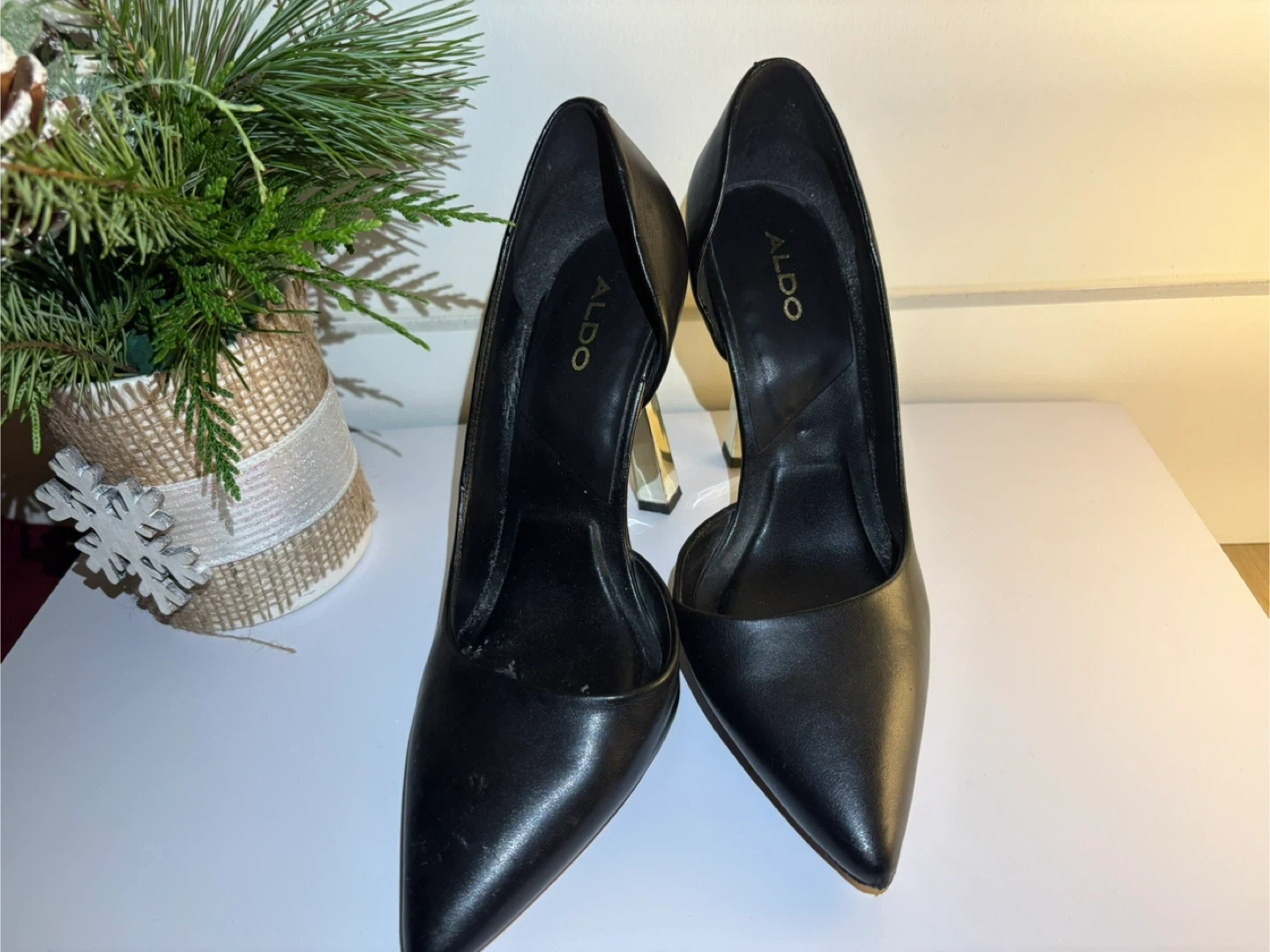 Selling a pair of Aldo black heels. They show some signs of wear on the soles, but the uppers are still in good shape. Perfect for a night out or a special occasion!