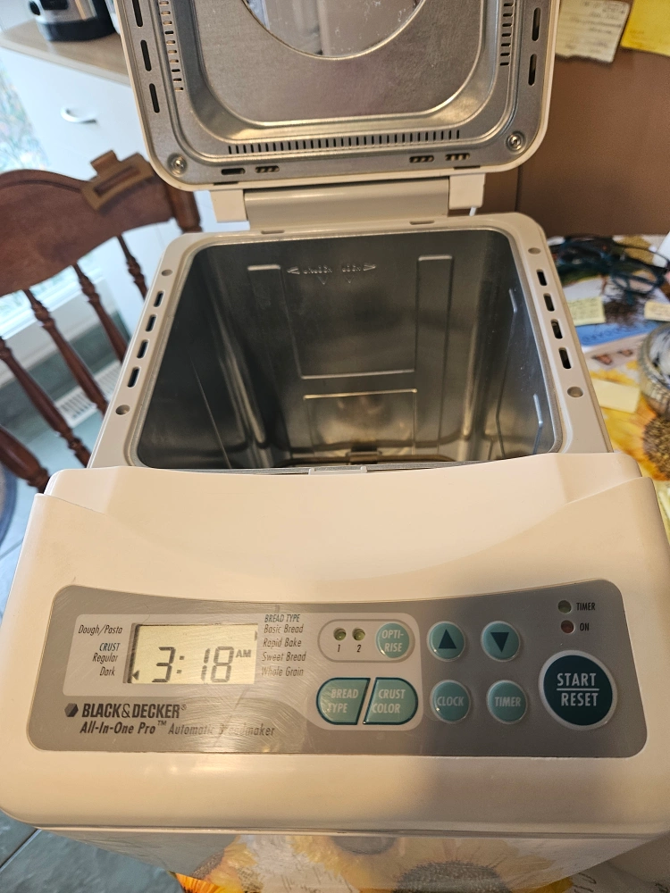 Selling a Black & Decker All-in-One Pro automatic breadmaker. It's in good working condition and ready to make some delicious bread or pizza dough.