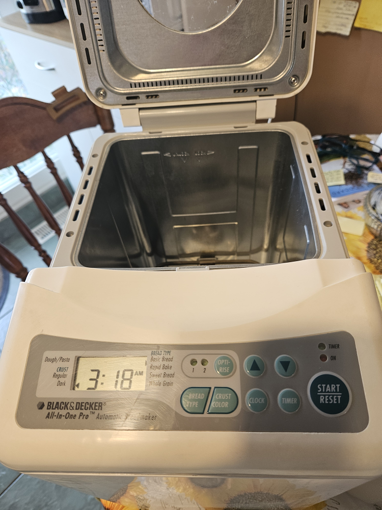 Selling a Black & Decker All-in-One Pro automatic breadmaker. It's in good working condition and ready to make some delicious bread or pizza dough.
