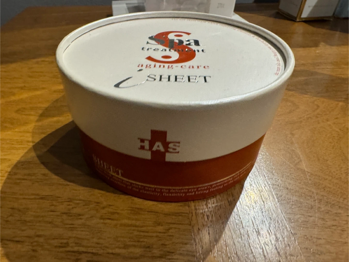 This is a container of Spa Treatment aging-care sheet masks. The eye sheet mask is designed to improve elasticity and flexibility. Great for a refreshing eye treatment!