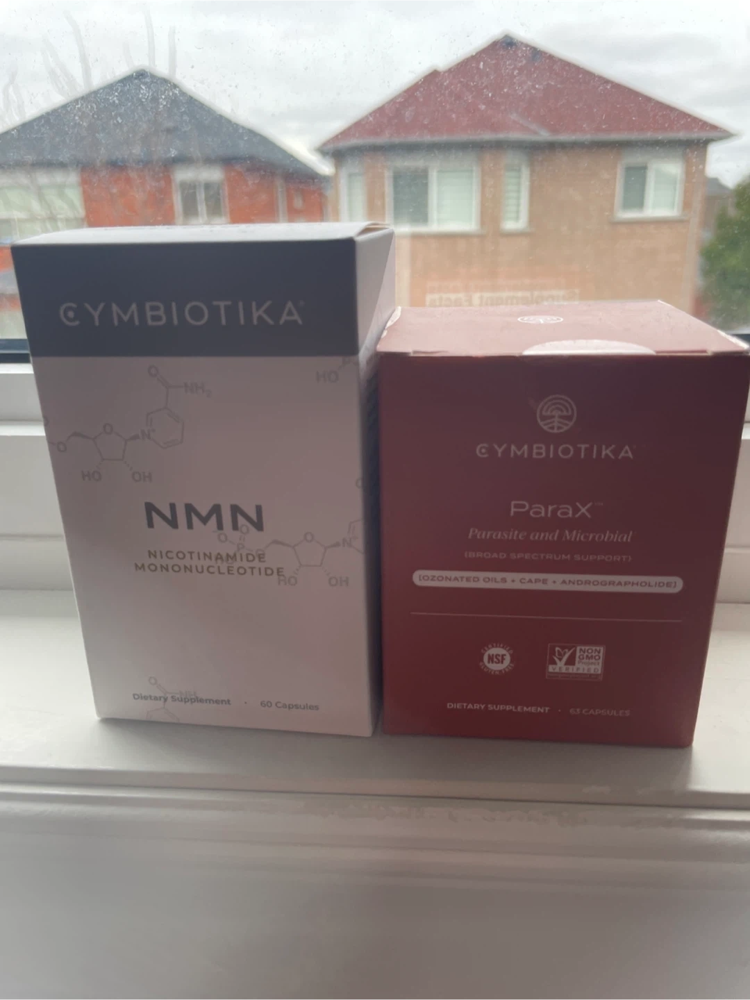 Worth 220 on website. NMN (Nicotinamide Mononucleotide) dietary supplement with 60 capsules. Also includes Cymbiotika Parax (Parasite and Microbial) dietary supplement with 63 capsules. Both are Non-GMO Verified.