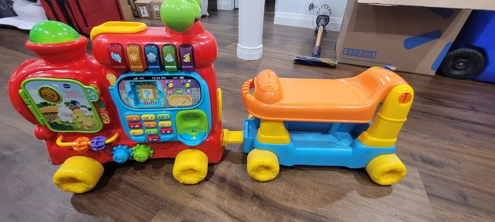 This VTech ride-on toy is a smart cruiser that helps with development. It's a multi-functional walker and ride-on toy with interactive features. This toy is great for little ones learning to walk and explore!