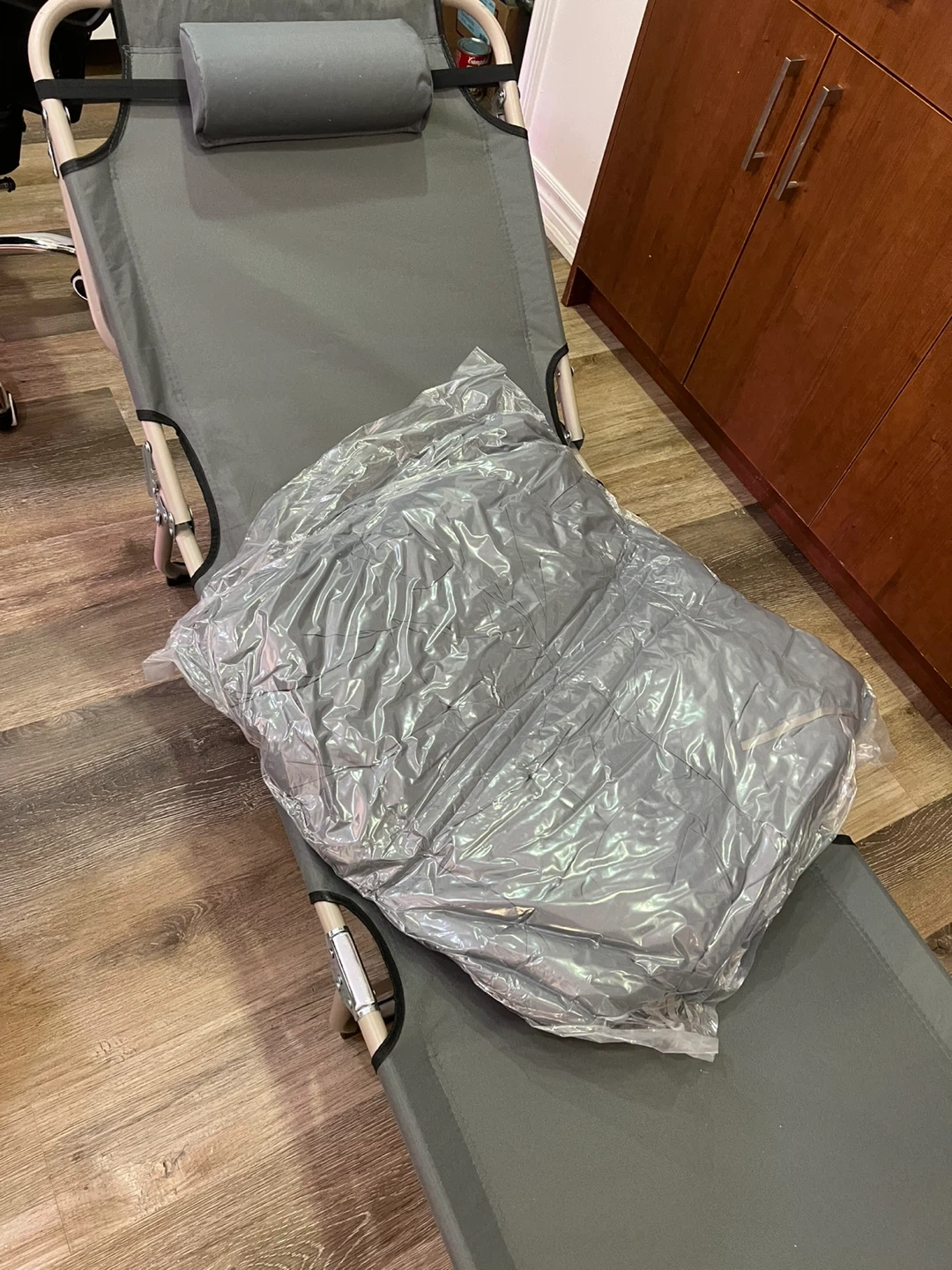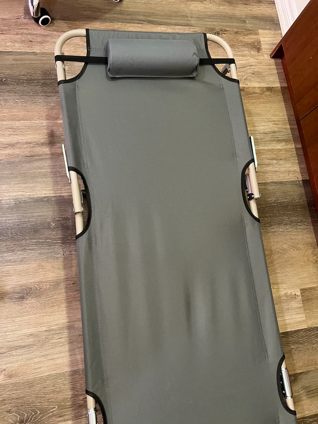 Grey Folding Cot with Pillow and Cushion
