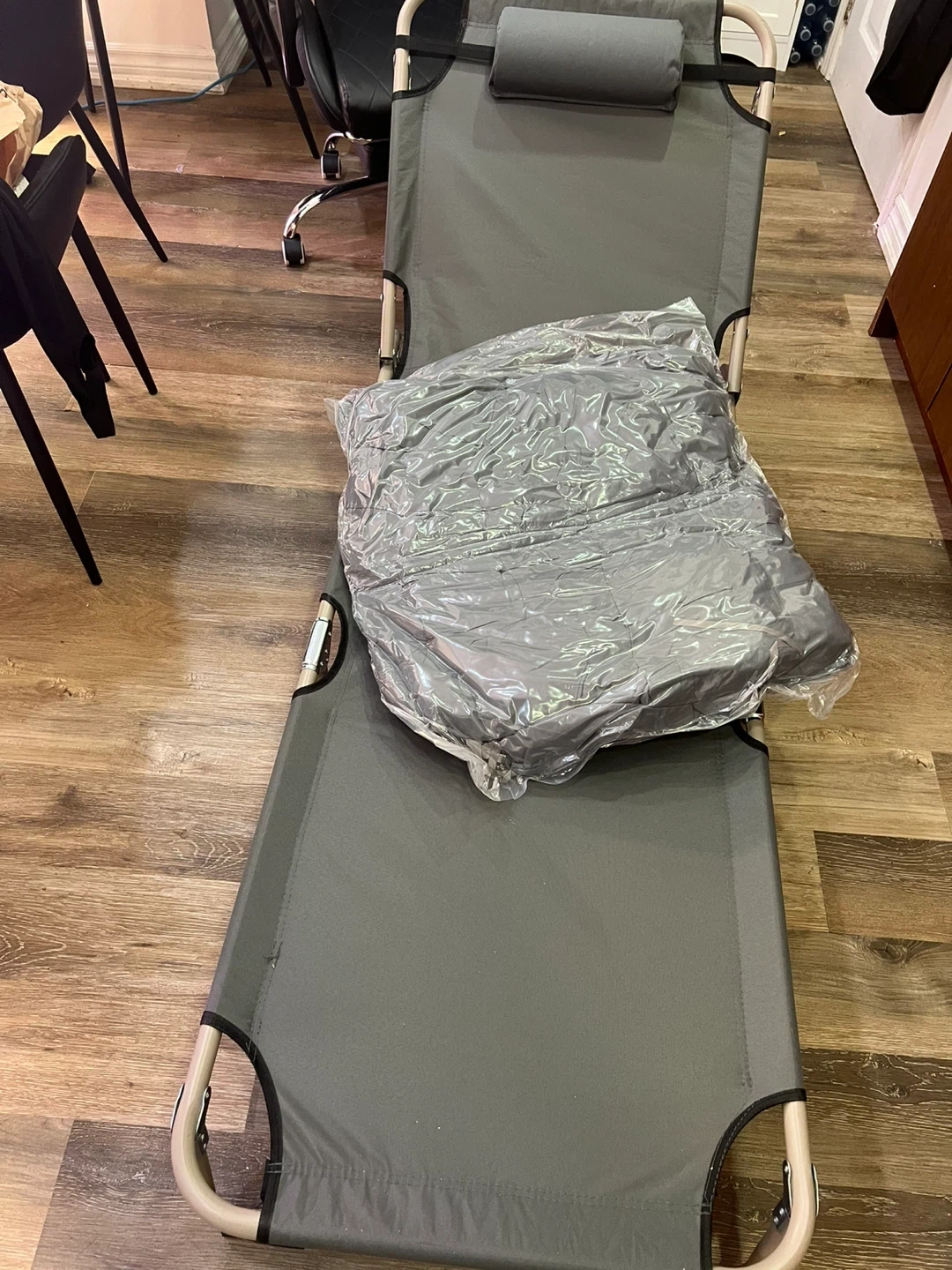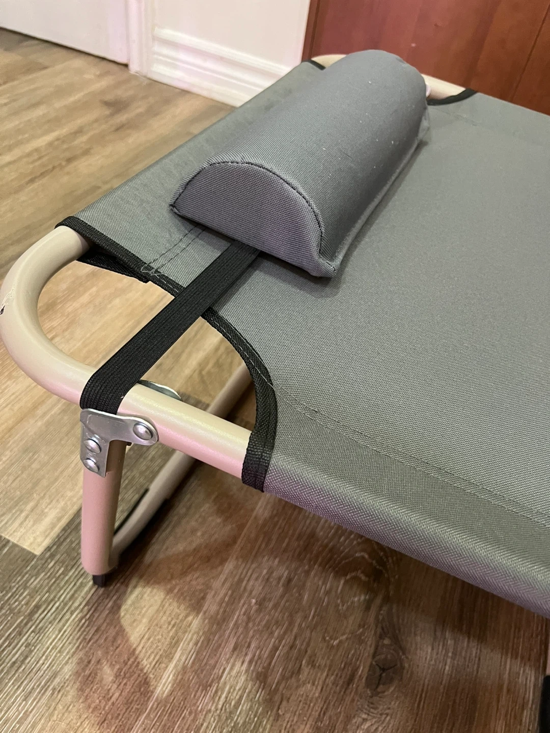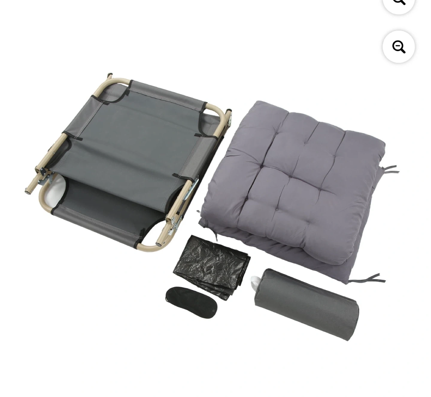 Grey Folding Cot with Pillow and Cushion