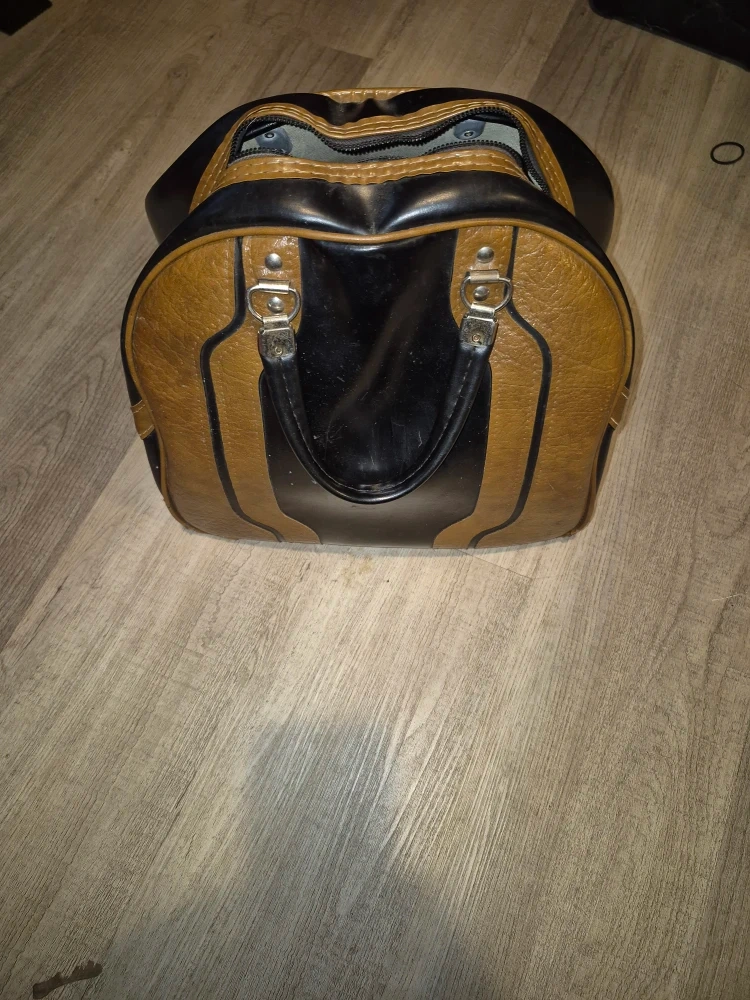 Brown and black vintage bowling bag. It has a unique retro look and in good condition. Willing to package with Nitro bowling ball also posted for $50.