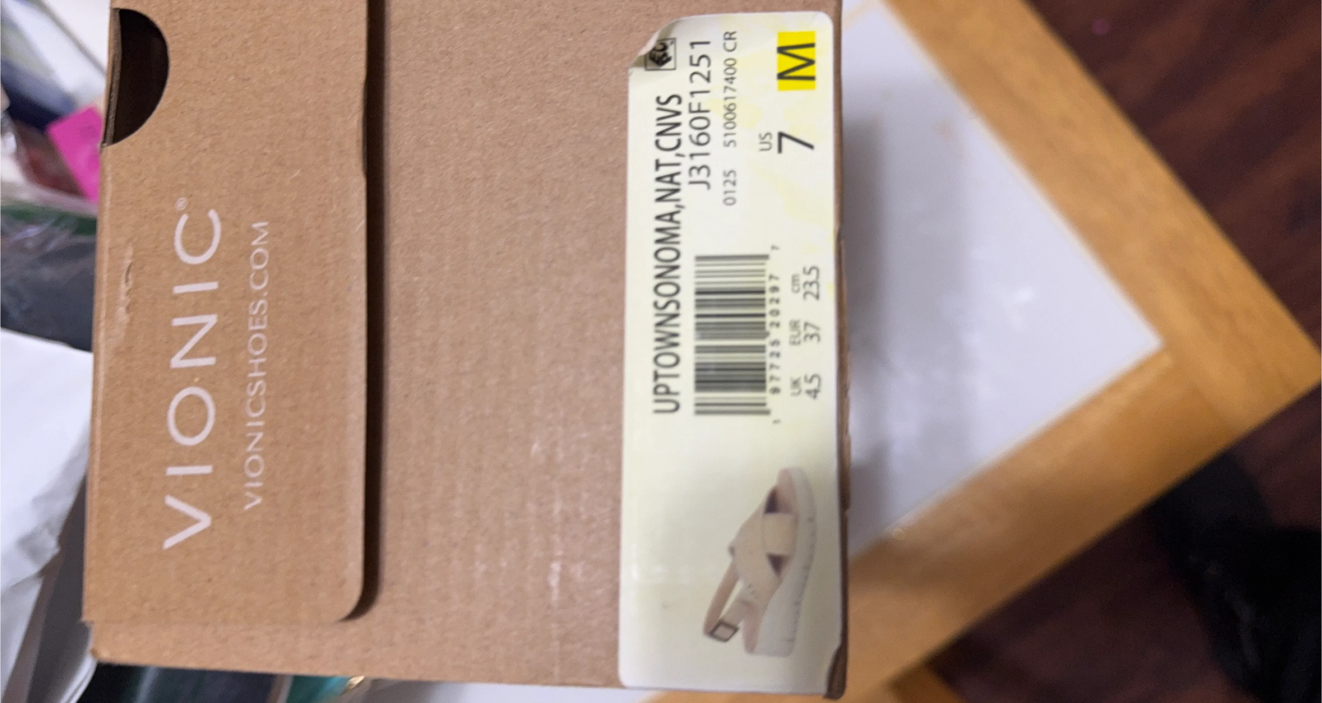 Vionic Uptown Sonoma sandals in a natural color. US size 7. Features a comfortable platform design.