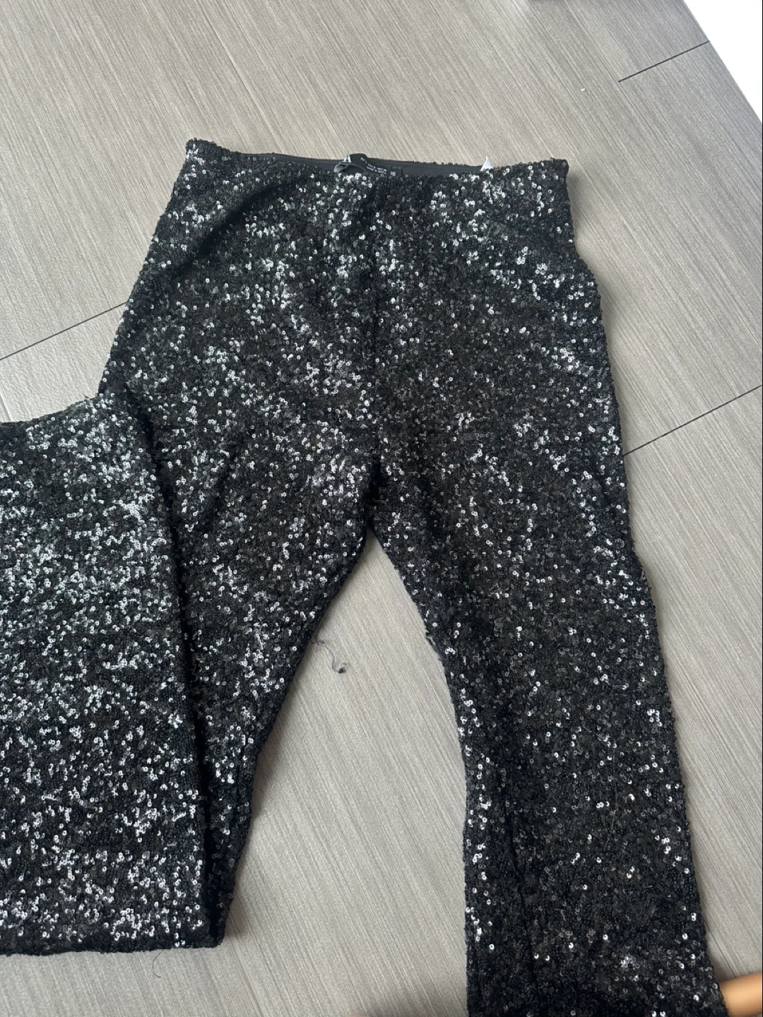 Selling a pair of Zara sequin pants in size small. They're in great condition and perfect for a night out or adding some sparkle to your wardrobe!
