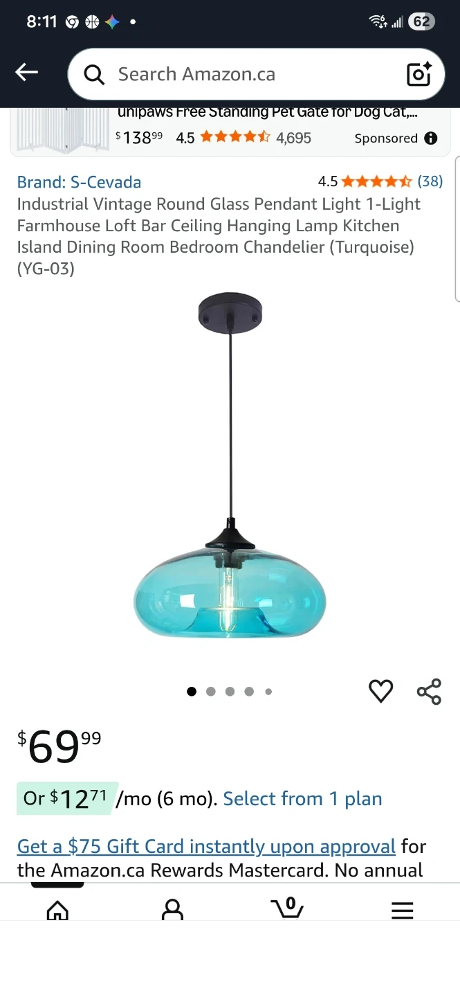 This S-Cevada pendant light features a turquoise glass shade. It's a 1-light fixture with an industrial vintage design. Perfect for kitchen islands or dining rooms!