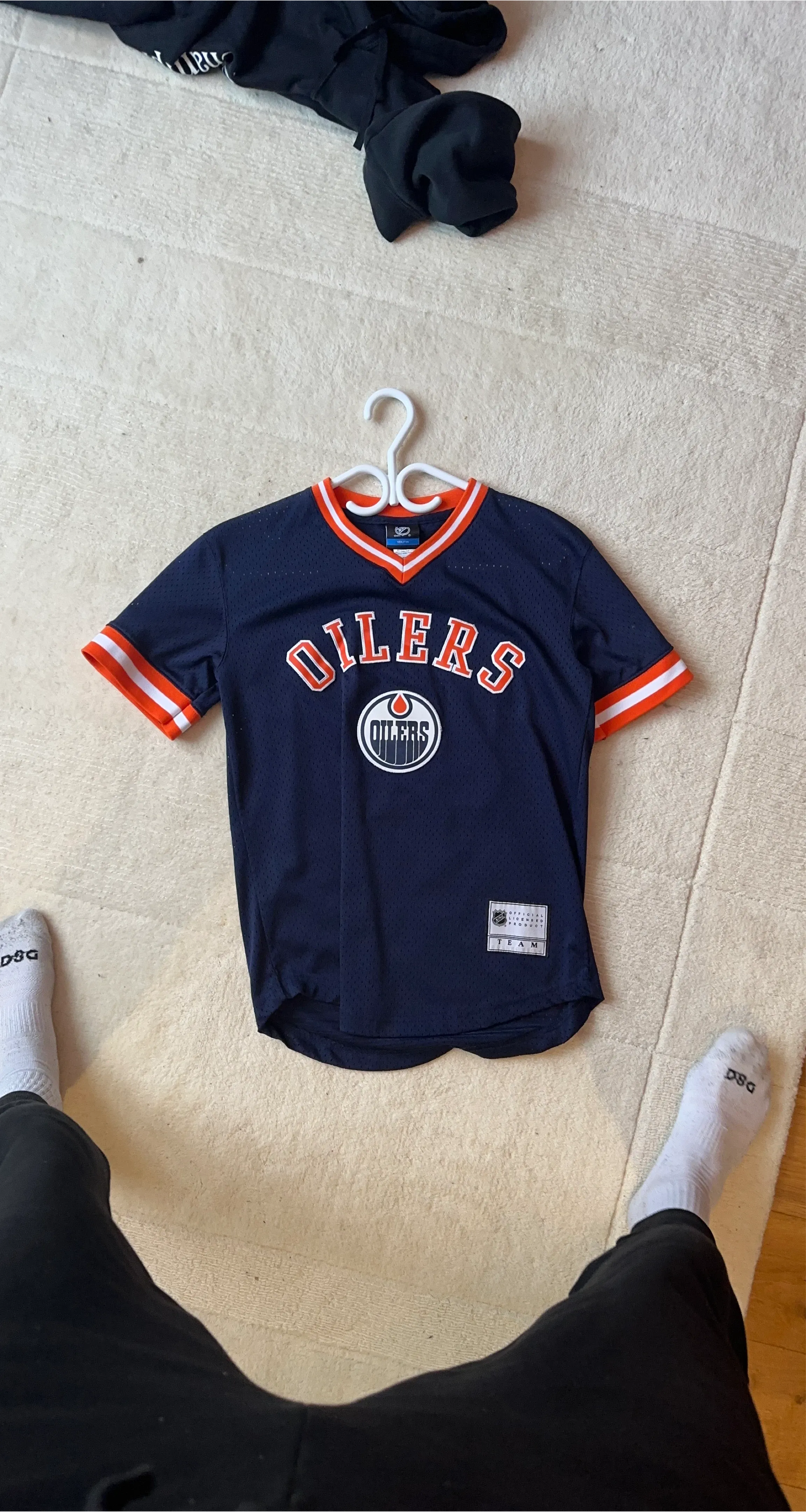 This is a youth size medium Edmonton Oilers jersey featuring McDavid's name and number 97. It's made of a breathable mesh material with contrasting orange and white trim. A great piece for any young Oilers fan!