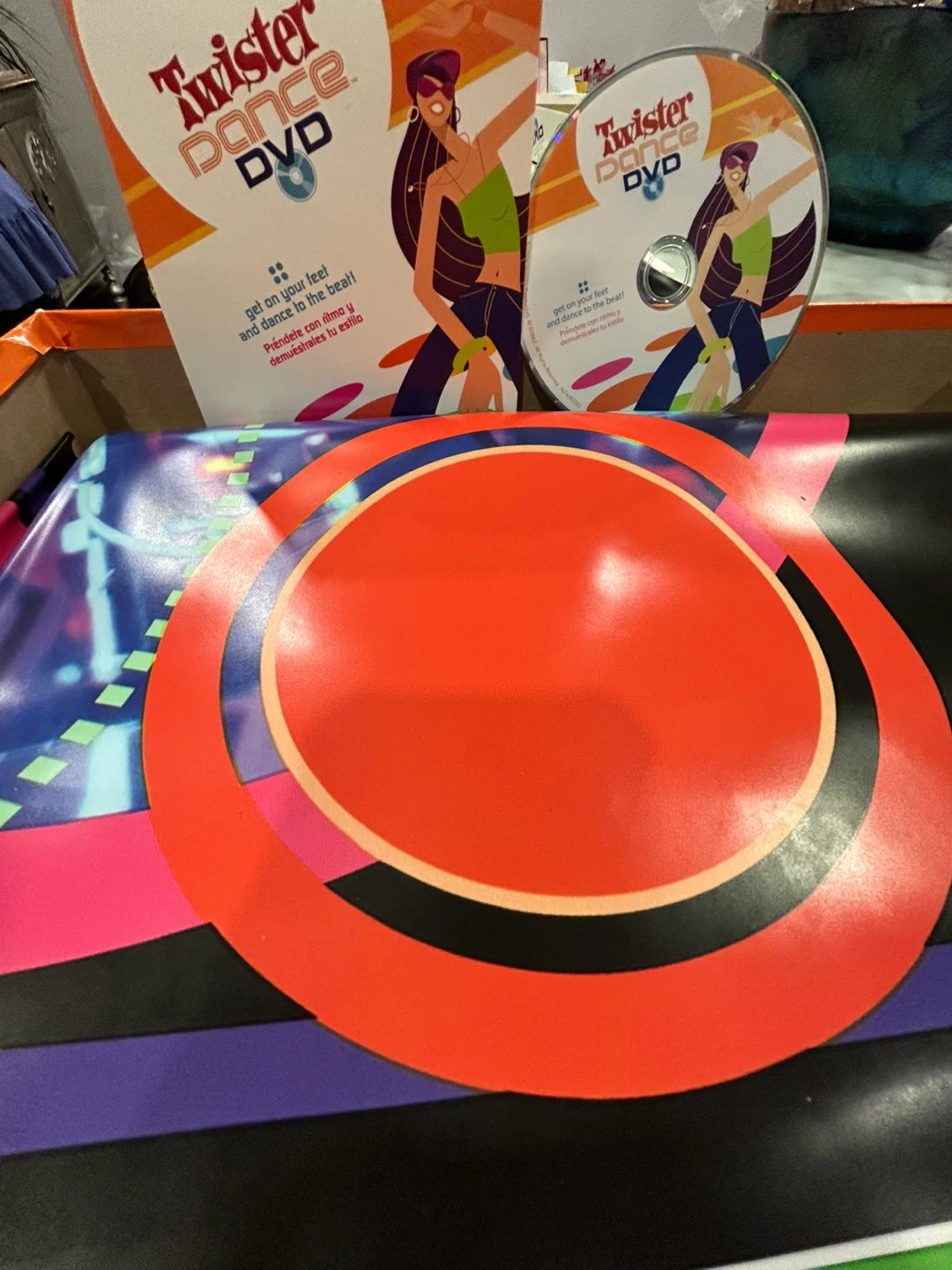 Get on your feet and dance to the beat with the Twister Dance DVD! It includes the DVD disc and 4 mats.