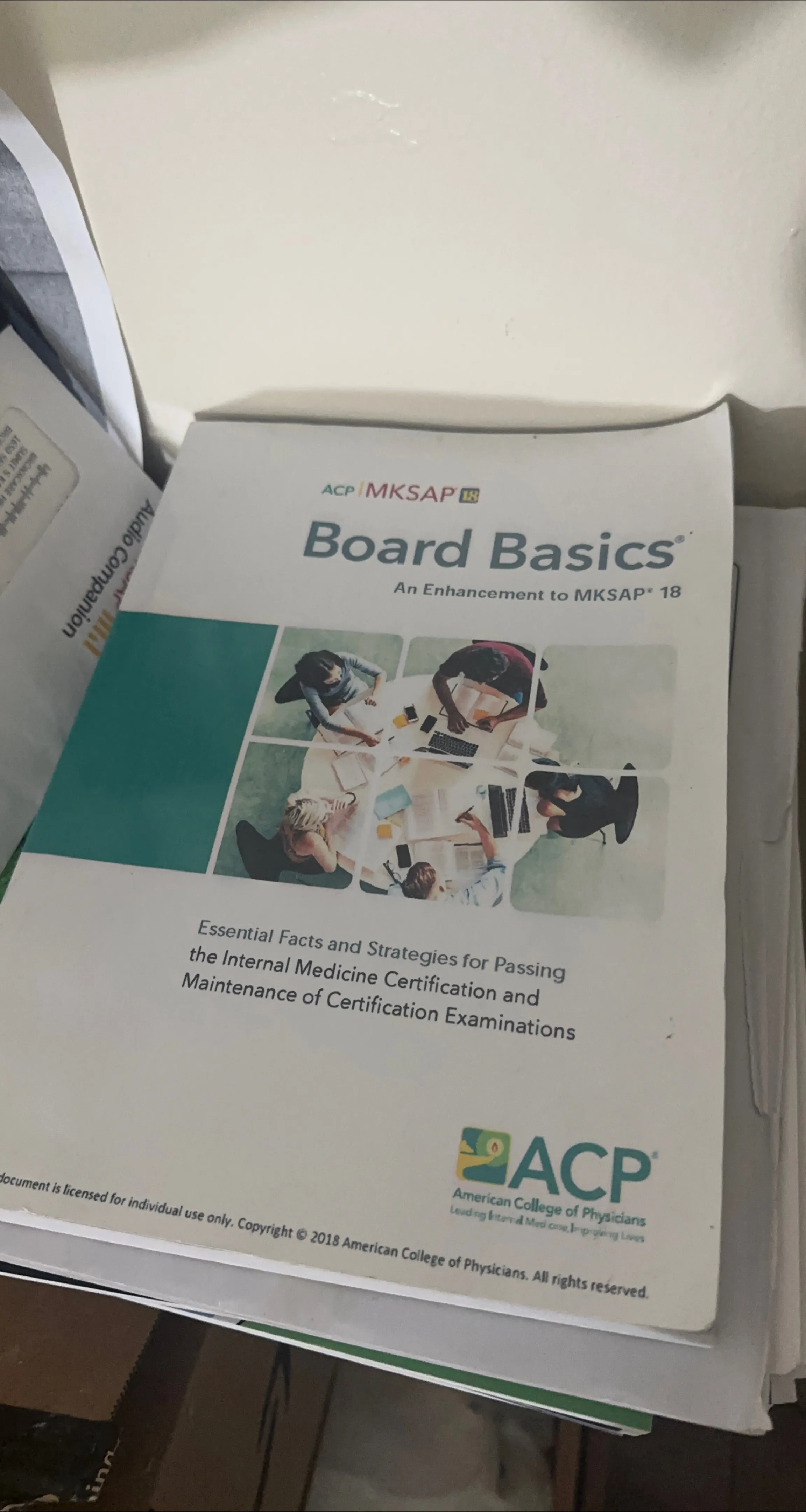 ACP MKSAP Board Basics book. It's an enhancement to MKSAP 18 and covers essential facts and strategies for passing Internal Medicine Certification and Maintenance of Certification Examinations. Copyright 2018.