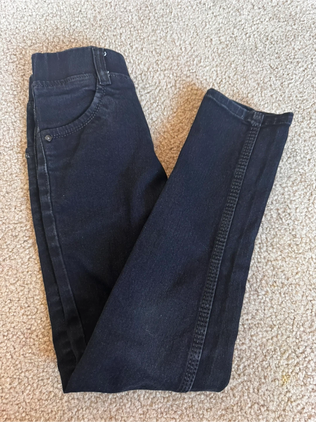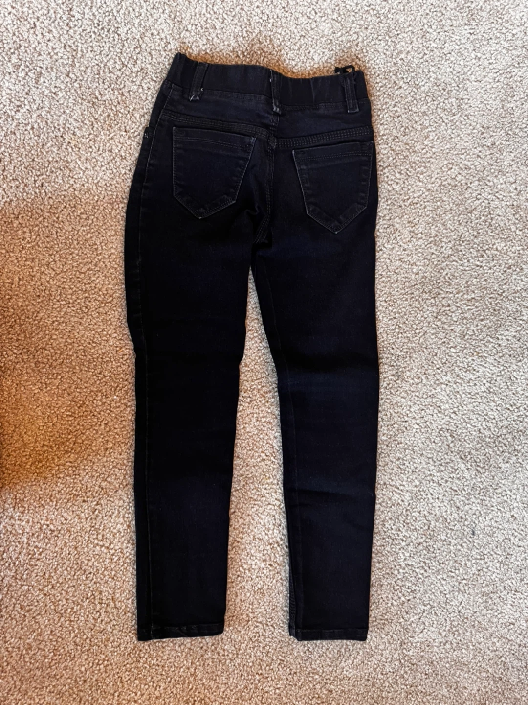 These are black denim jeans. They're a size small with a slim fit. Perfect for everyday wear!