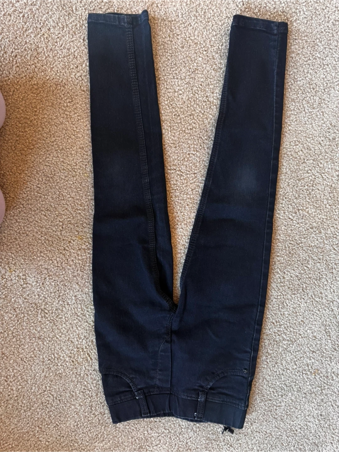These are black denim jeans. They're a size small with a slim fit. Perfect for everyday wear!