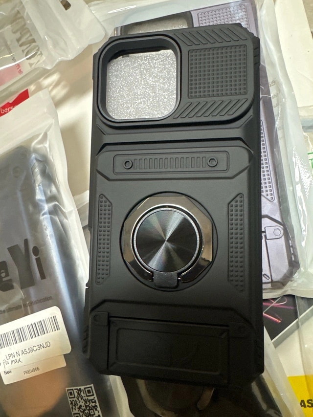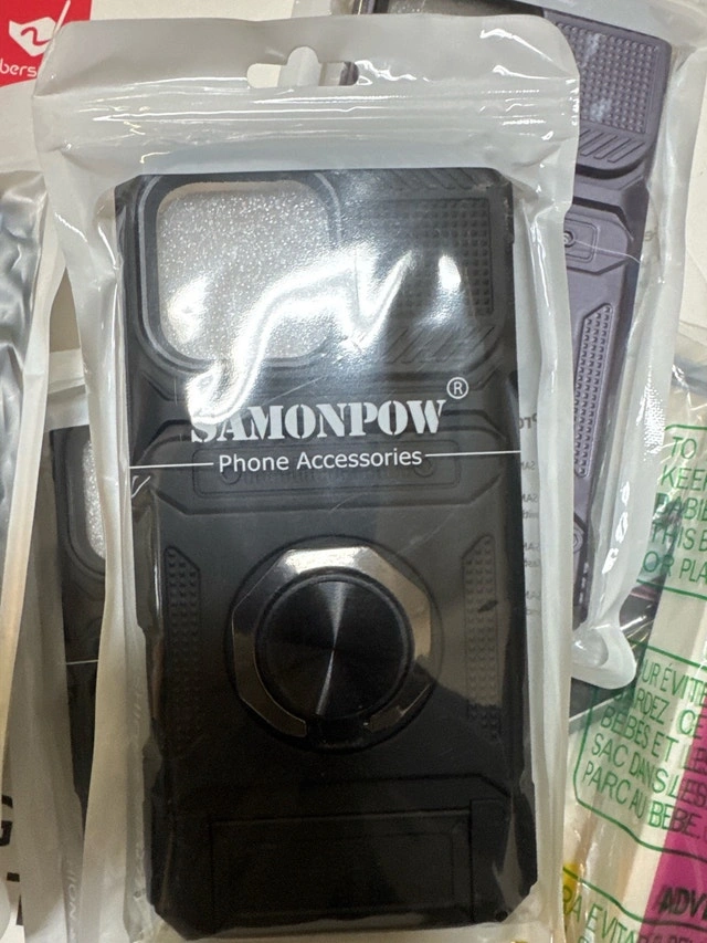This heavy-duty armor case offers military-grade protection for your smartphone. It features a dual-layer, impact-resistant design with a non-slip texture for a secure grip. The integrated 360° rotating ring holder doubles as a kickstand for hands-free viewing and also makes it compatible with magnetic car mounts. Reinforced corners and a raised bezel protect the screen and camera. Exact cutouts ensure full access to all ports and buttons. New condition. Cash and cashless payments accepted. Curbside pickup available.